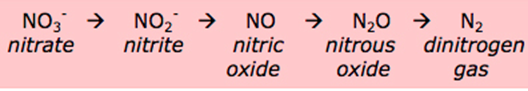 Denitrification occurs when Nitrogen is lost through the conversion of nitrate to a gaseous form of nitrogen, such as nitric oxide, nitrous oxide, and dinitrogen gas. This occurs when our medium (soil, growbed, ect) is saturated and the anaerobic bacteria use nitrate as an oxygen source.