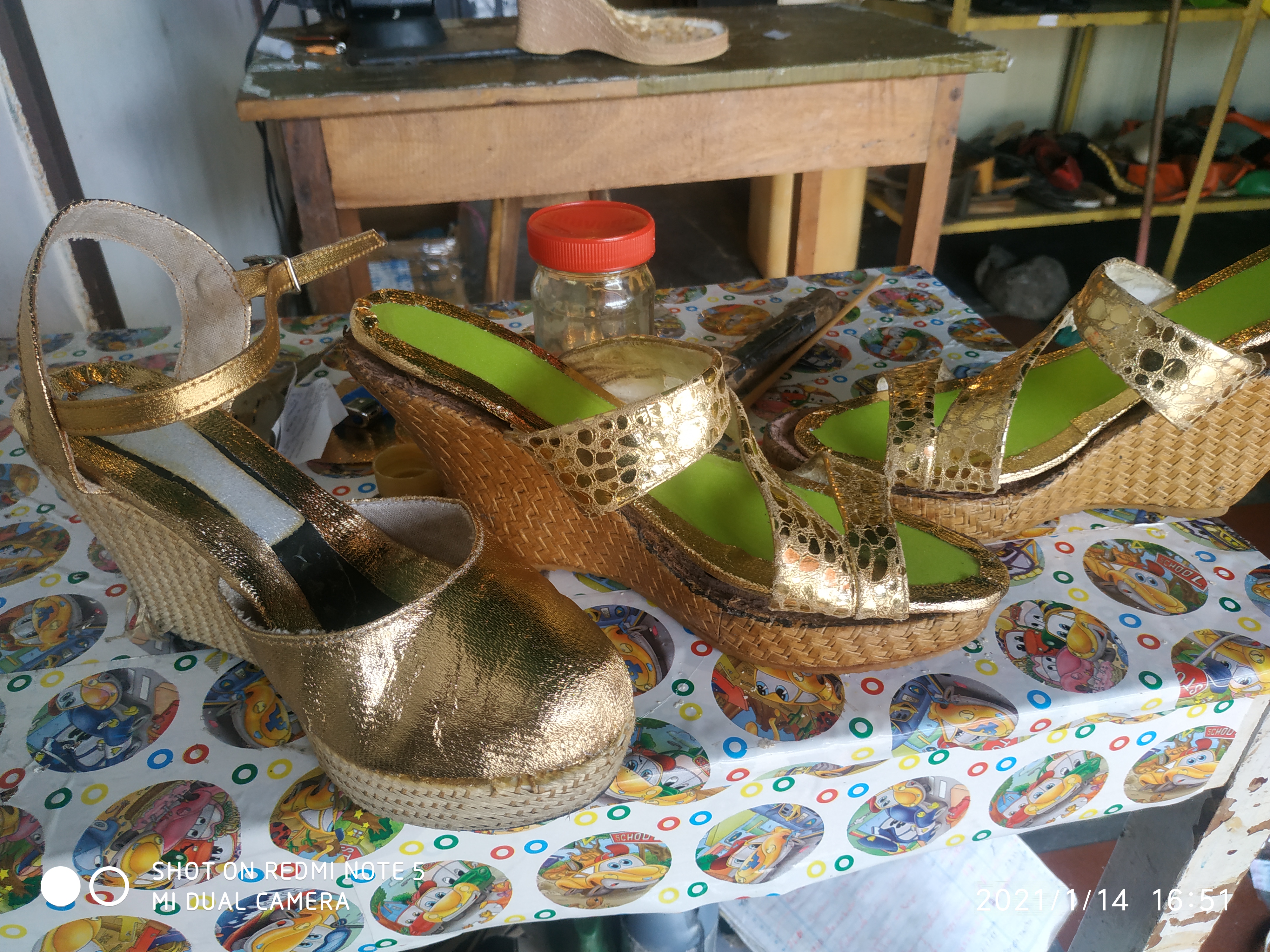Empezando el día en mi negocio de reparaciones. De calzados y. Restauraciones de sandalias.
