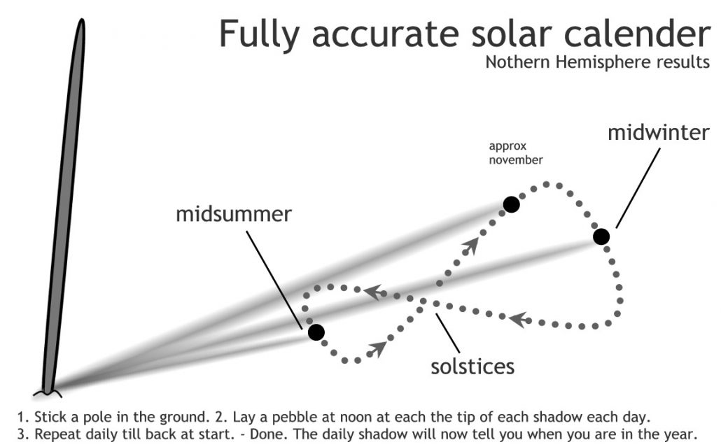 once you have laid down 365 pebbles, you’re calender is ready for use. From now on, simply track the shadow over the stones to know how far you are from mid-winter or midsummer.