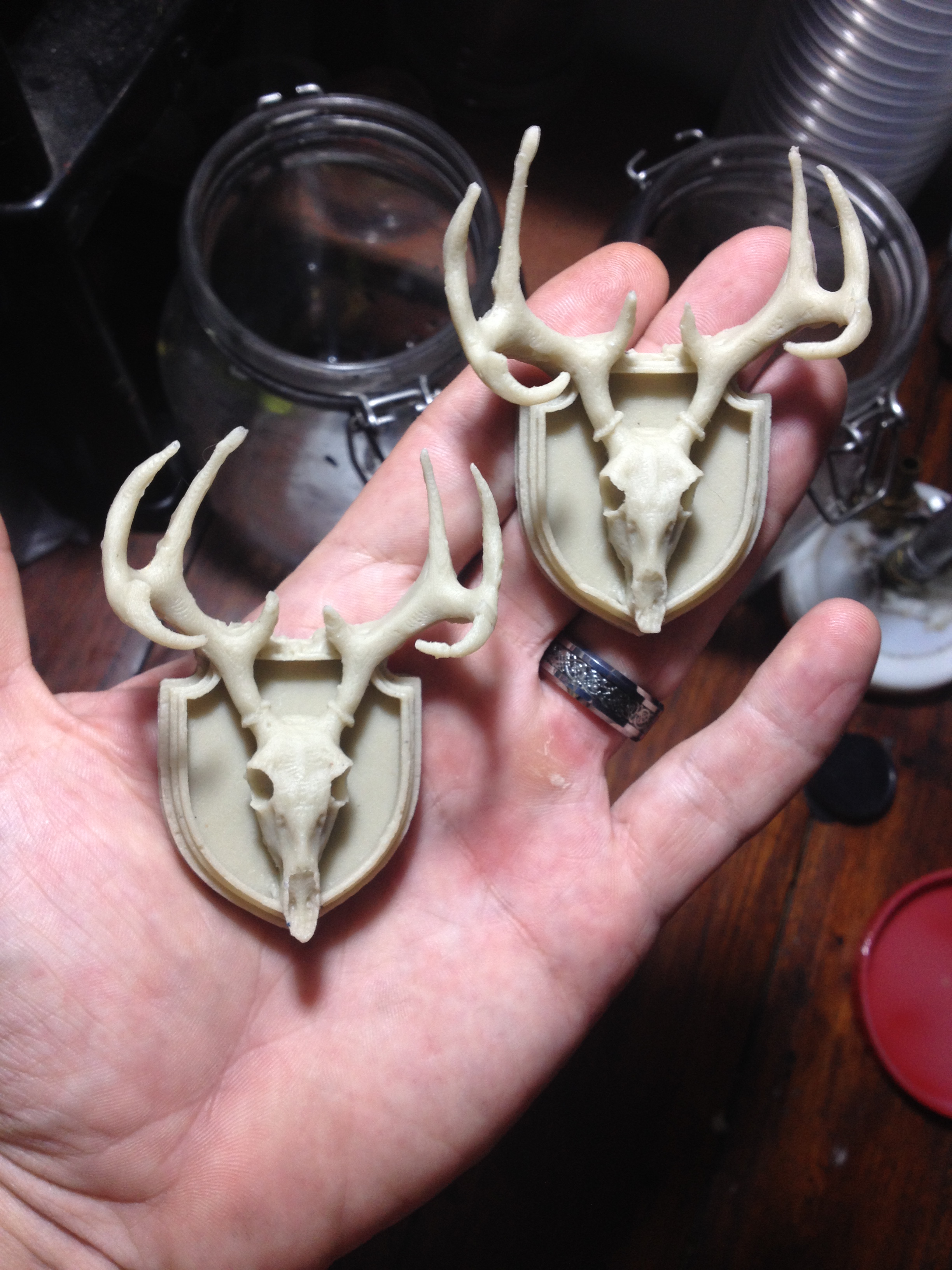 Then I took notice of how truely un attractive the limb dampers were on my bow (I wont mention any names) and I thought to myself "would'nt it be the coolest thing to have a skull and crossbones instead of this....whatever you wanna call it on there?) Of corse the answer to that was " Oh hell Yes!!!" So i started looking around to see just what creating something like that would entail and what I found out was that I could'nt afford it. lol. Also to make matters worse, I could'nt find a company that could even reproduce the artwork! Not to be detered, I dug in, hunkered down, and refused to be defeated. Rather than relying on expensive machining and injection molding I decided to take it into my own hands...litterally. Relying on my 20+ years experience as a professional artist I did some preliminary sketches to figure out dimensions and the look I was after. Then I went to the art store and got some modelling clay. Boy was that a disaster. Although I could sculpt things, they just were'nt the quality and precision I was looking for. So began my quest in the 3d modeling realm. After countless hours and a year with my face stuck in a computer screen I had the "Jolly roger rib back" split limb damper... Well at least in the digital world any way. Which unfortunately didnt do my bow any good at all. So now it was to the 3d printer to make my creation into something I could hold in my hand, and while that was happening, reasearch on what the best material I could get my hands on for vibration dampening along with all the other requirements necessarry like not getting stiffer in the cold and things like that. After all hunters were going to be using these and I couldnt have them not performing at there best at the moment when they are needed the most now could I? After much research I had gathered all the necessarry materials and tools and began the mold making process, then the casting process, and when the testing process began and I loosed that first arrow, I knew that I had just created a ground breaking product. I could actually hear and feel the difference between my dampers and the ones that were on there before. A big difference! And they looked so cool on there. Next was to actually test them against the other dampers on the market head to head and find out for real where I stood in the world of archery silencing. The results were astounding! The Jolly roger model (skull & crossbones) dampened vibration at more than twice the effectiveness of the leading dampers. I made videos of the head to head comparisons and they are a part of this presentation.