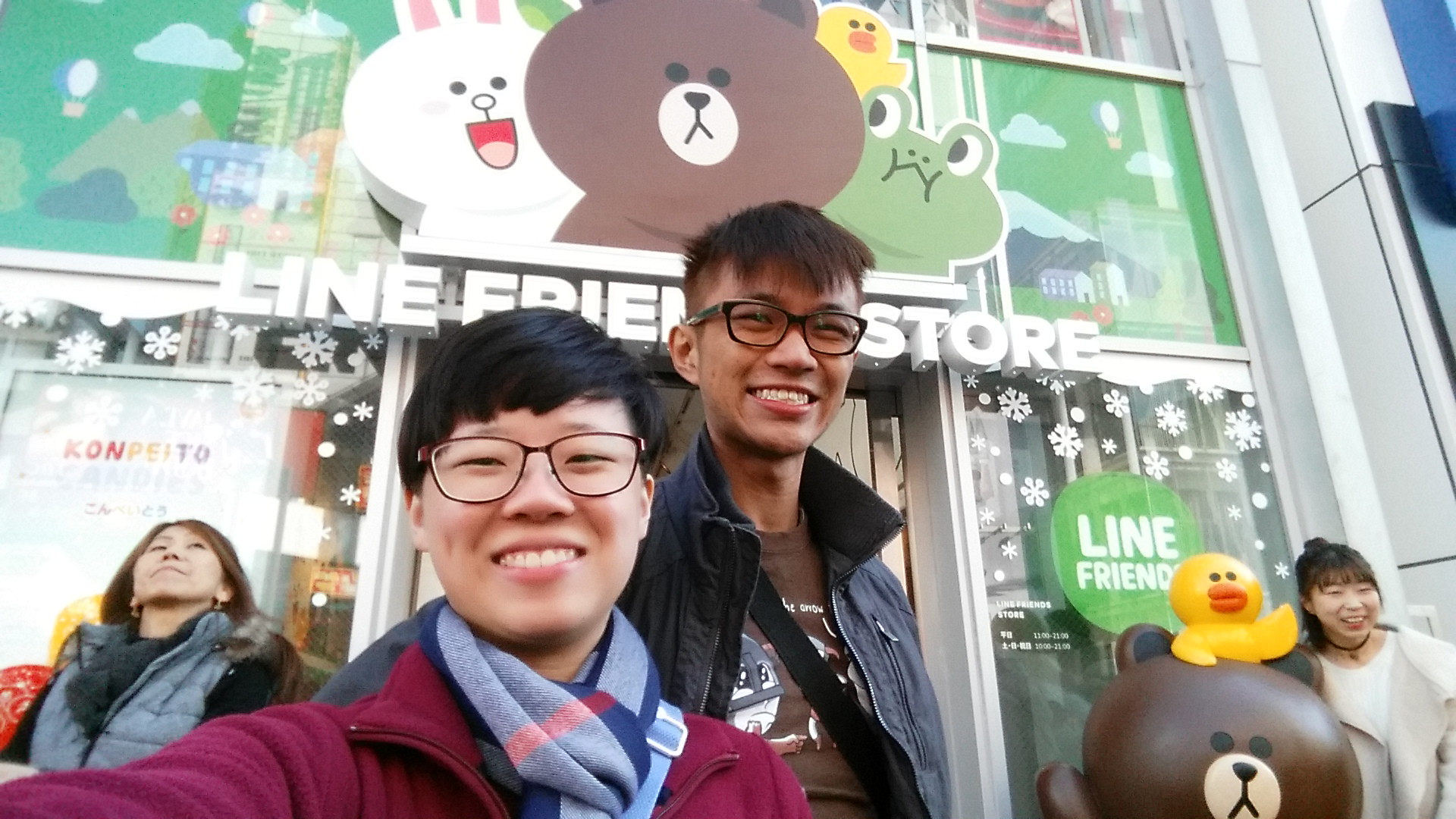 I don't really have that many photos from the actual street, unfortunately, since there was too many people (who are mostly taller than me). But after walking along the whole street we came across the LINE friends store!