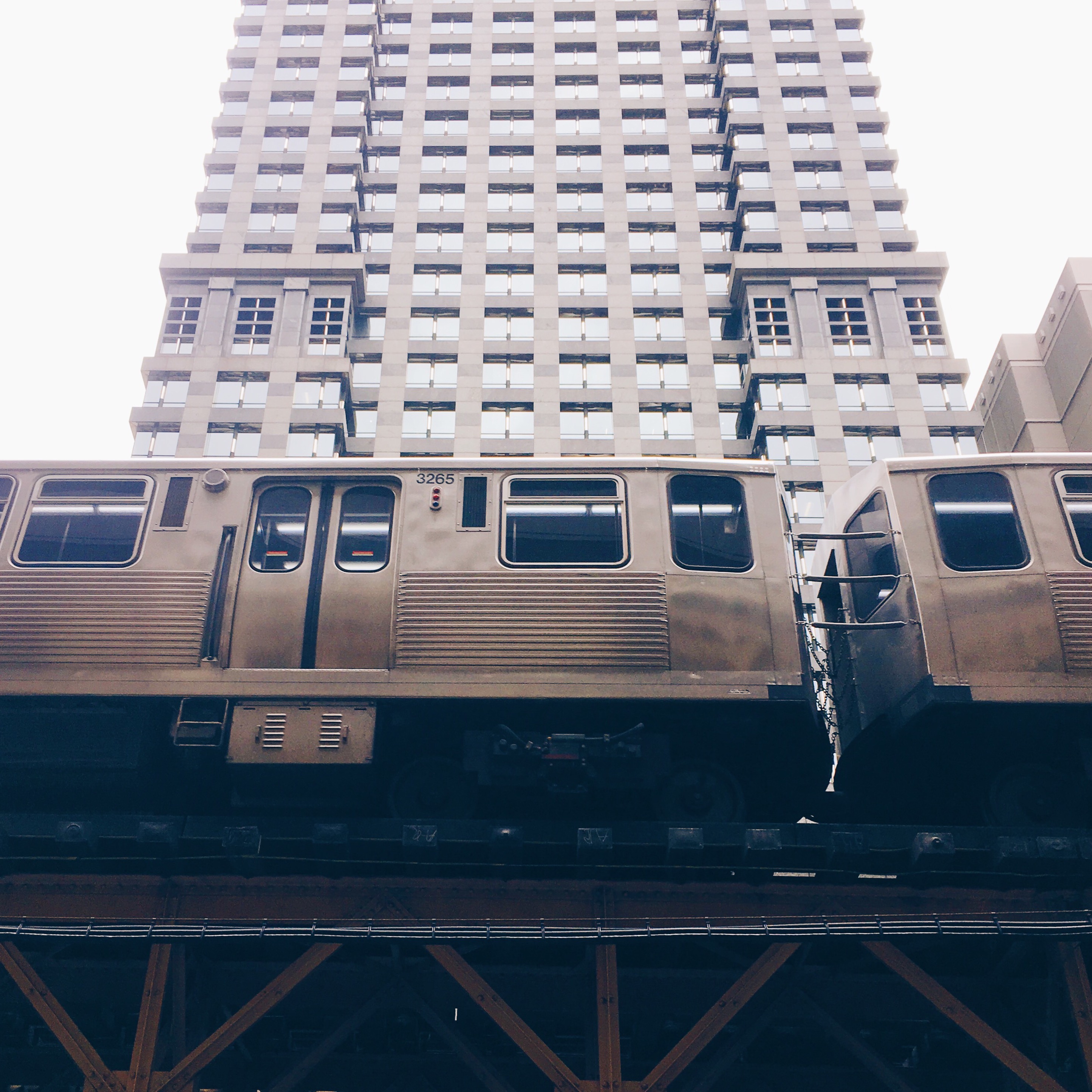 Lookup shot of Chicago's architecture as the CTA train passing by.