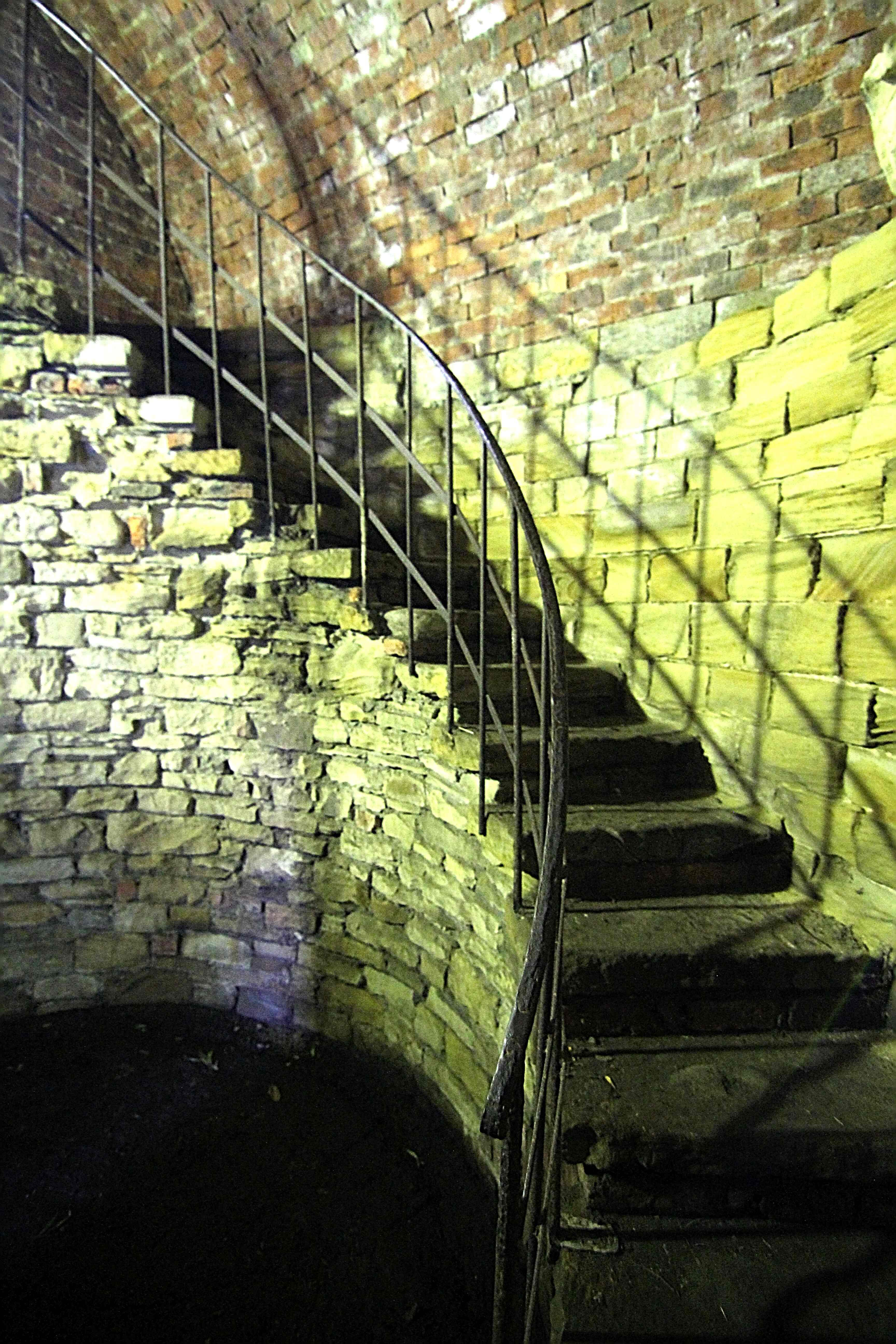 This is the stairwell that leads into the pit from the upper entrance & landing. The pit is a small round room, certainly very confining for a human and would have been quite cruel and stark for a bear.