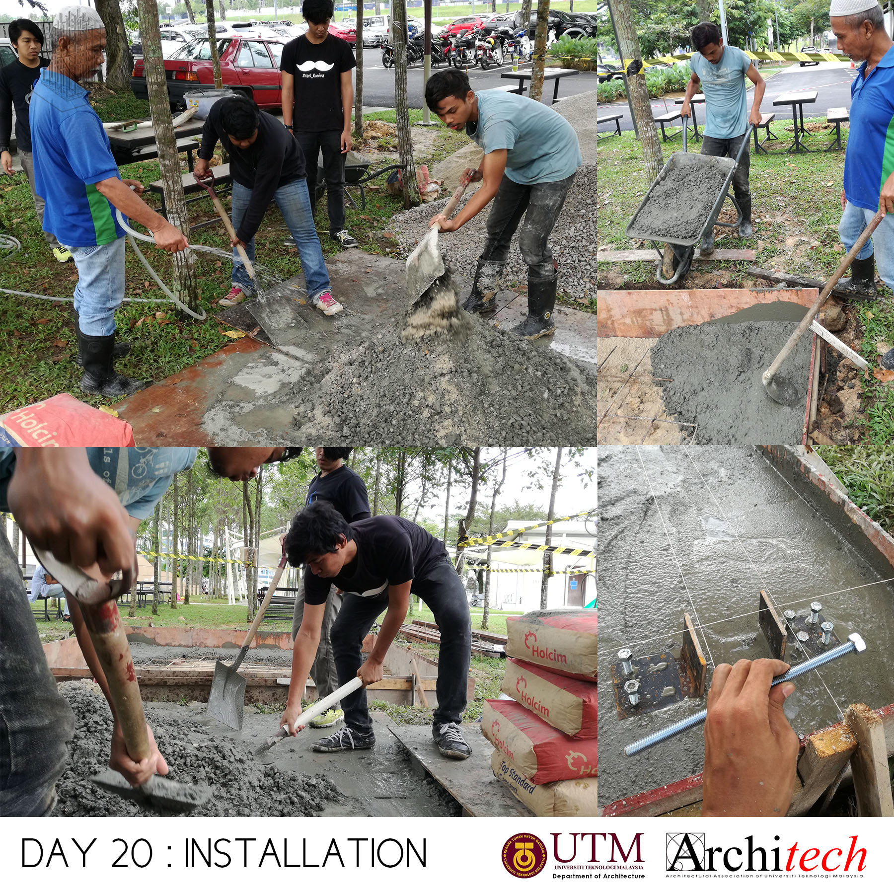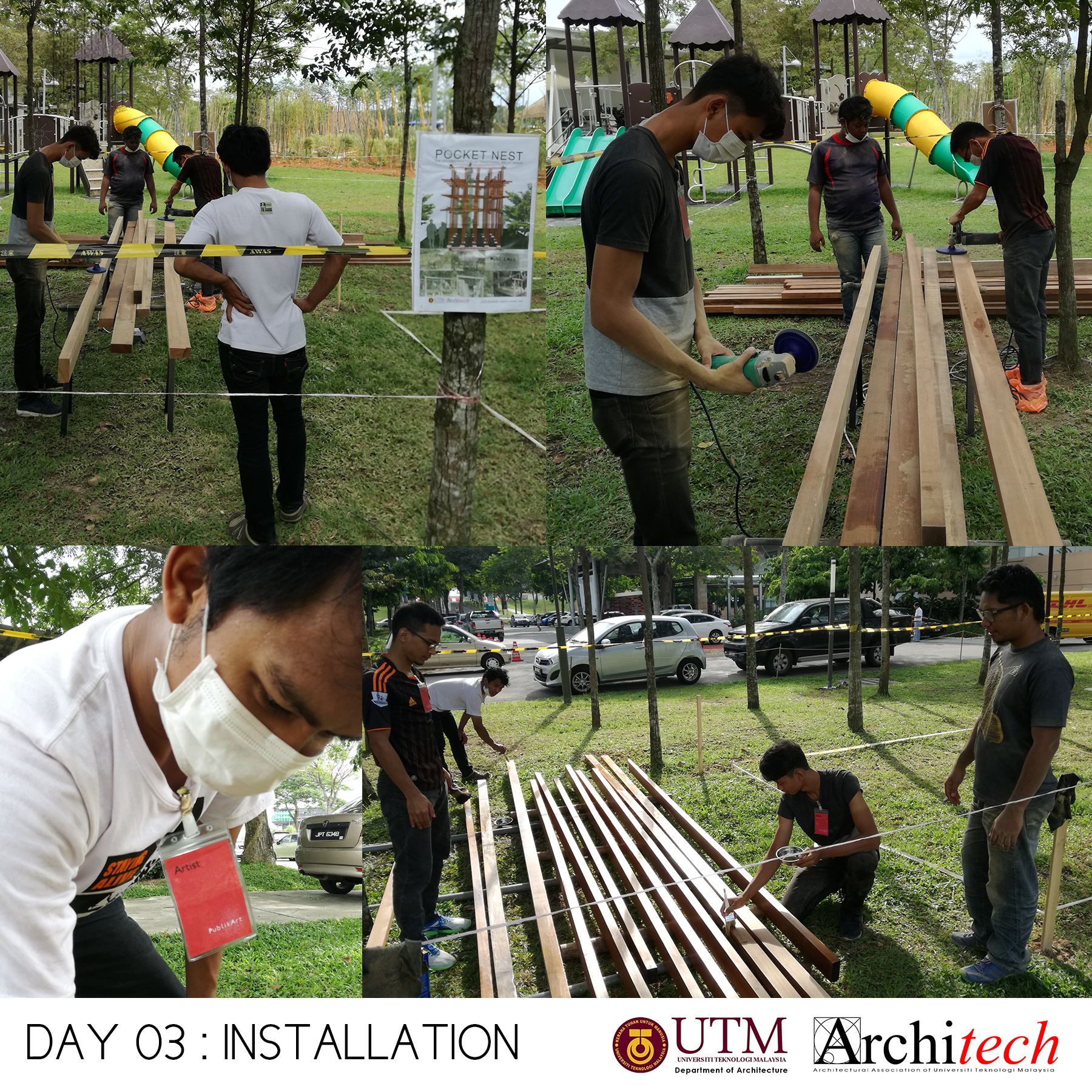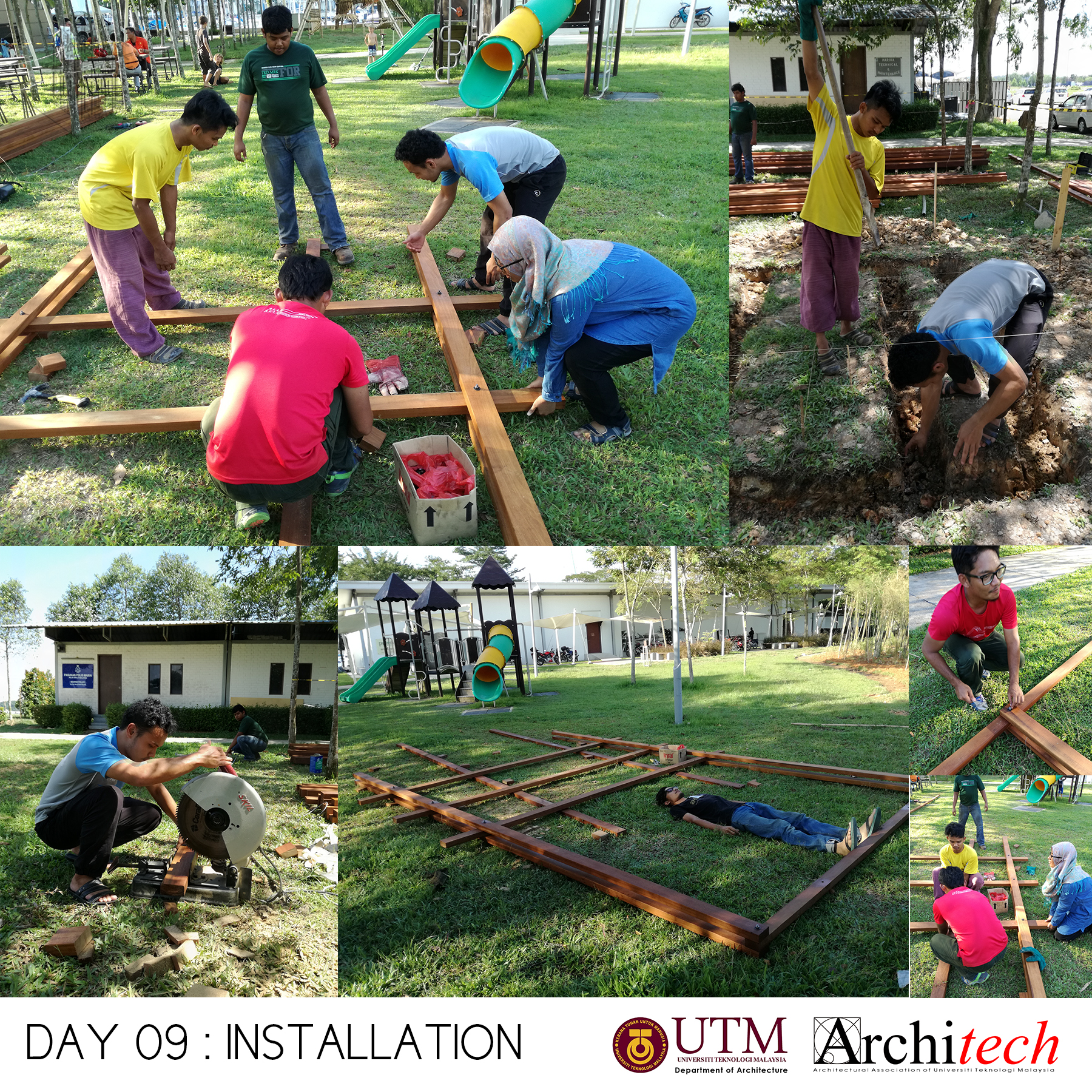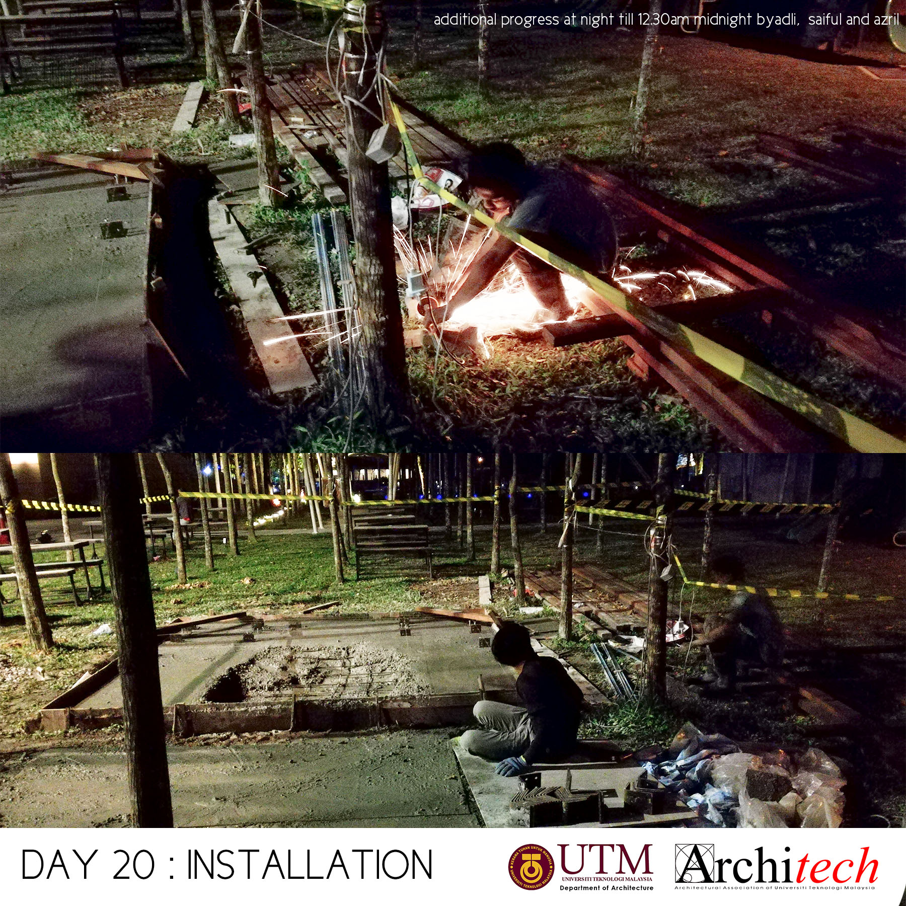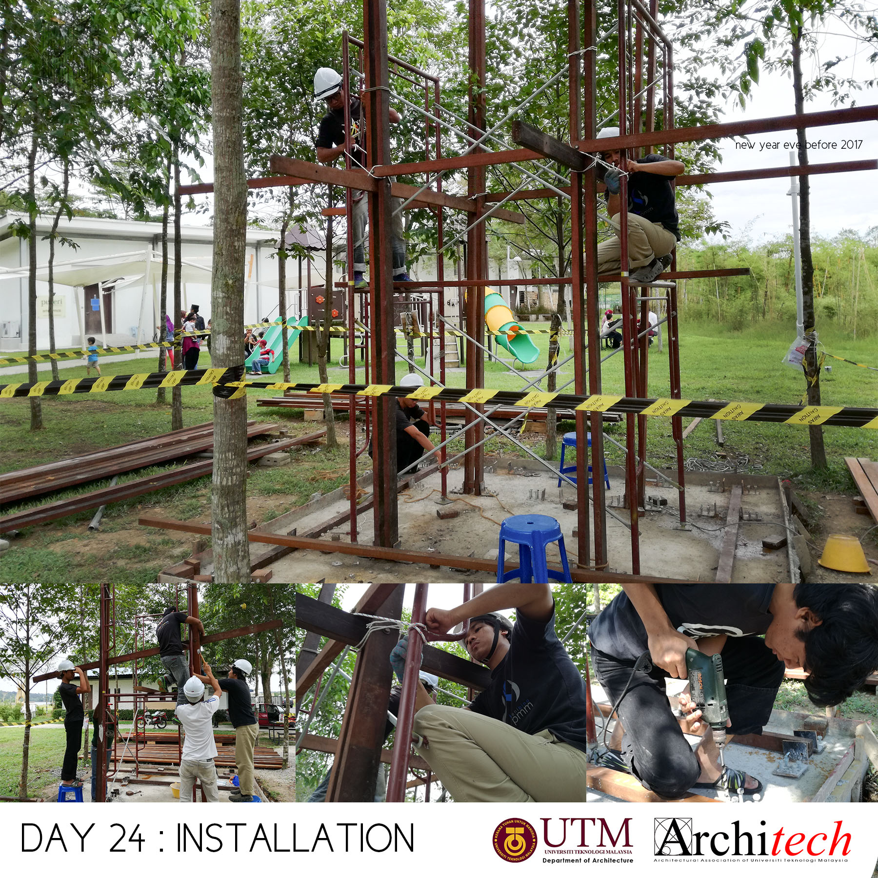 This project could never succeeded without a collective support from our society: Design partner, Chu Shu Ern, Nizam-Salim (nominated sub-contractor), Adli Sufiyan (onsite engineer) , Jamil Sodakin (concrete foundation specialist), special team force by M Hidayat, Halim J, Azril Adnan, Saiful Islam, Architech Society from Universiti Teknologi Malaysia comprising Syahir, Amir, Jheeson, Jeffry, Afiq, Sarah, Qamarul, Hazique, Xin Lei, Haithar, Sid, Aizat, Ashriel, Shaifull, Fitry, Akmal, Noramin, Fadhiah. Much appreciated to UTM’s senior lecturer, Dr Lim Yong Long. The curator team also did an amazing job and to Yeoh Lian Heng, Wong Xiang Yi, JJ Ng, we thank you guys. Also much gratification to the very honourable funder and linked to Khazanah Nasional Berhad, Nani Kahar from Lab DNA. Not to forget incredible people from Web Structures Multinational Company, they were Ir Ng Pek Har and Mr Angelo. Finally huge appreciation to all who helped us by giving motivational and encouragement support.