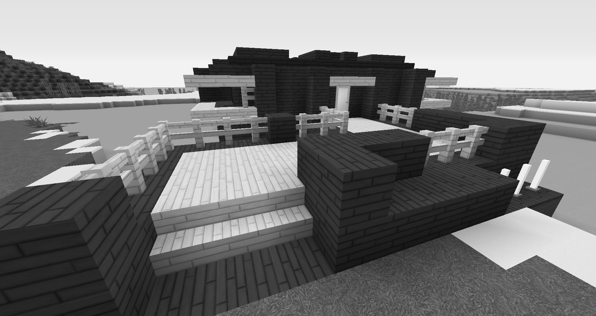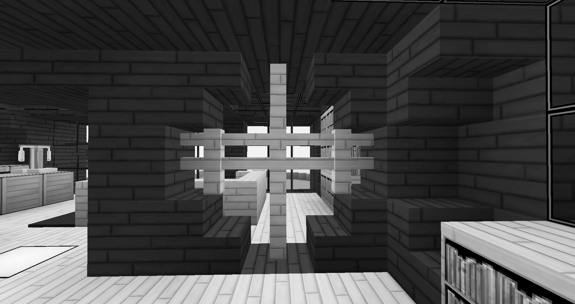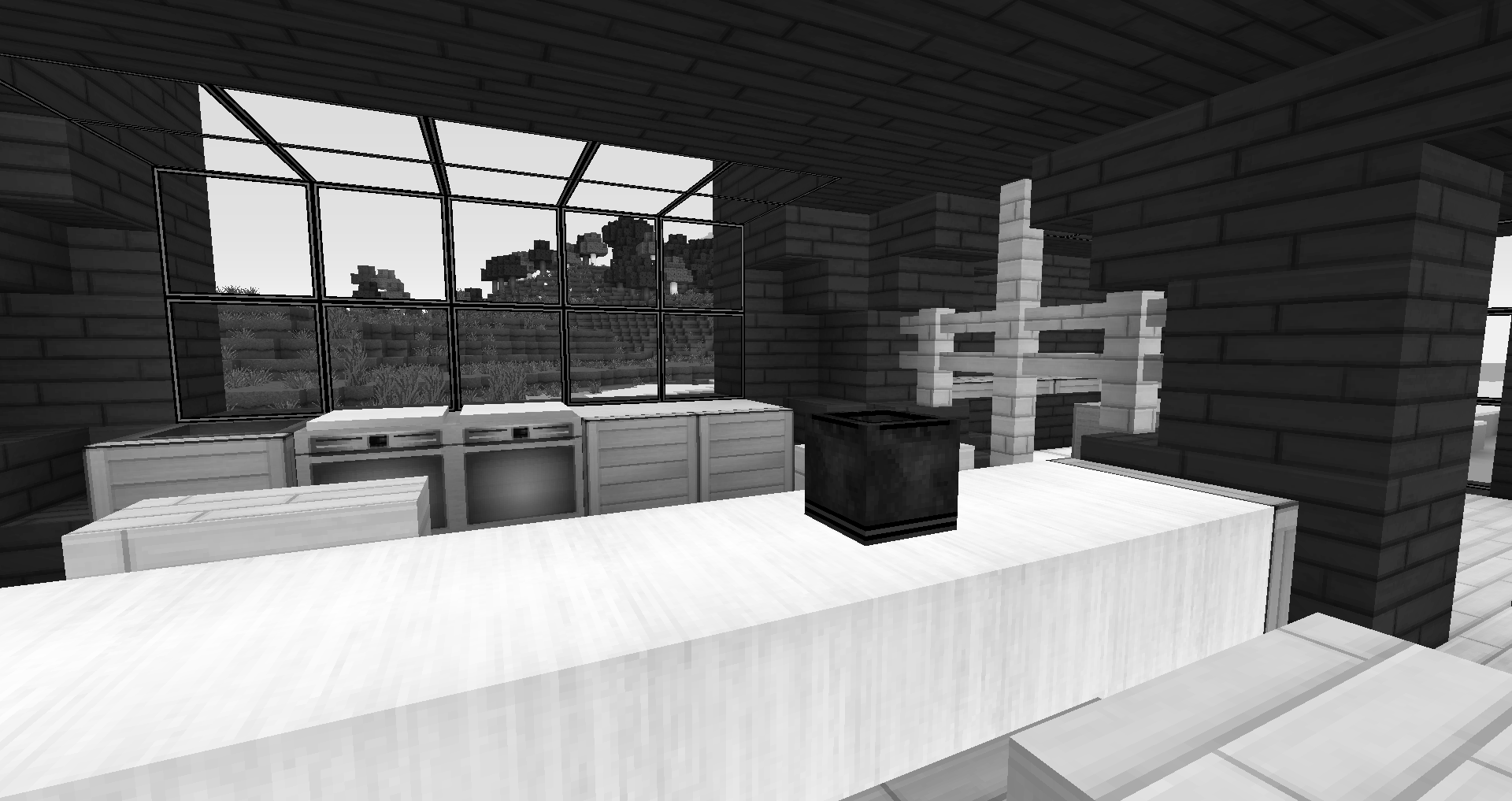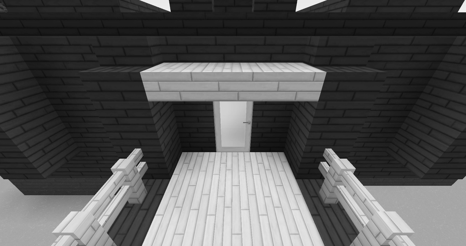 The room with the three big glasses was meant to be the master bedroom but it turned out otherwise. Now it is the living room. The two main bedrooms are located at the entrance of the building because you will have "the most" privacy there. What is also special about this little idea is the "complex" roof with the glass in it. It is such a shame that there are no half-glass-blocks in the normal version of MINECRAFT.