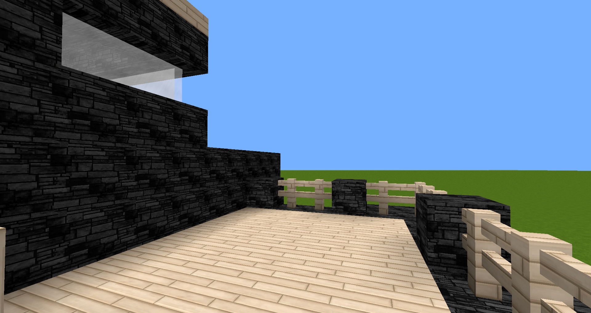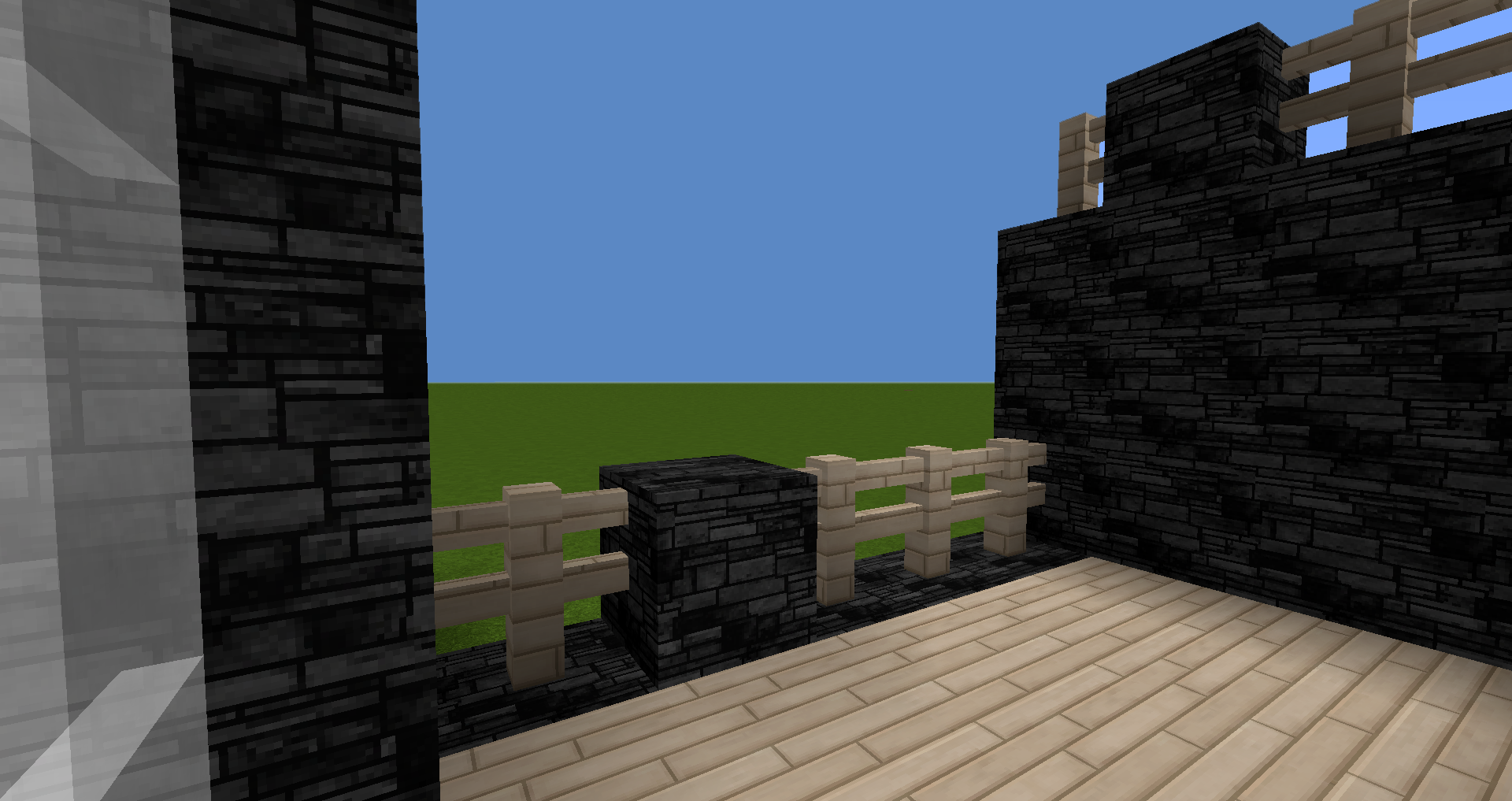 What I also love about this is that you have to take some stairs to reach the main door and when you enter the building you are standing on a kind of platform and are able to look into the room (I will mark the picture who illustrates it.). And the three balconies. Oh I just love balcones. They look so awesome especially when you can add them to a building to fill an empty place. And the fence that I use just matches so well with the surronding things it is a mirical. (At least I think so :p) There is quiet some more of this euphoria but it would take too long to describe everything.