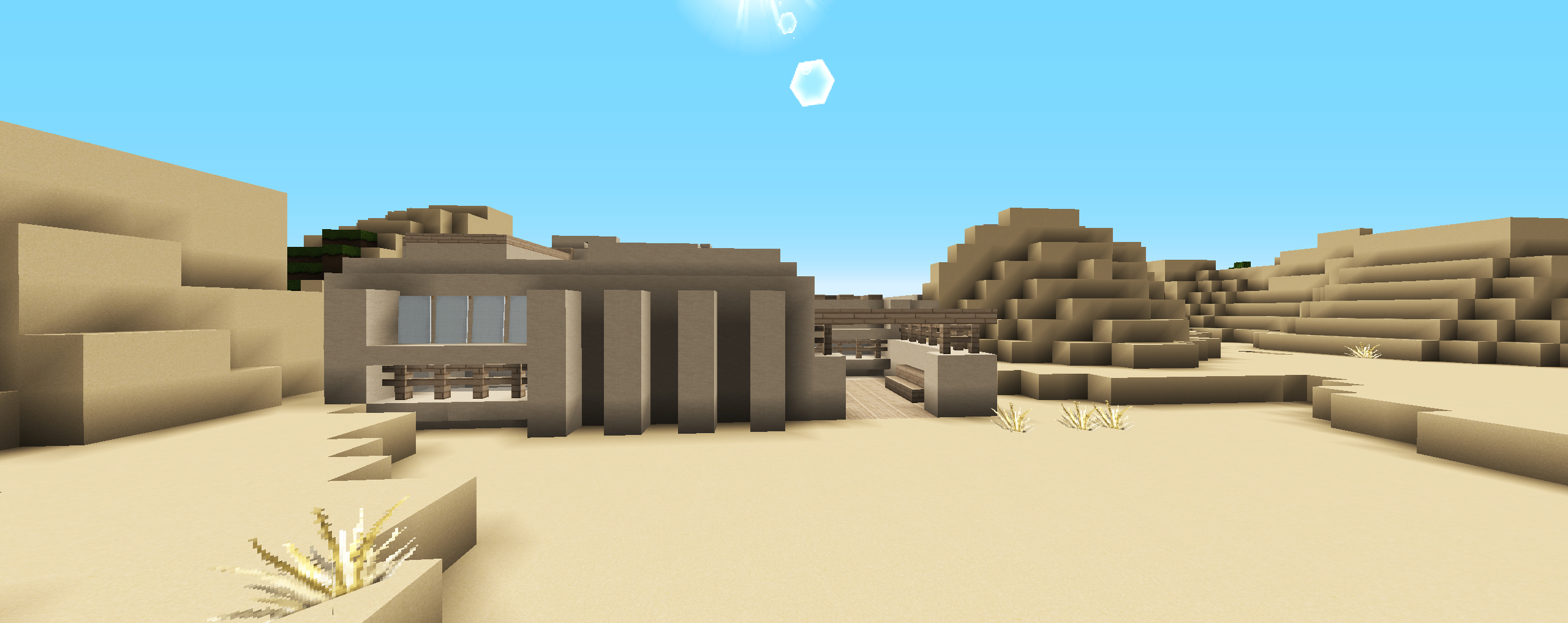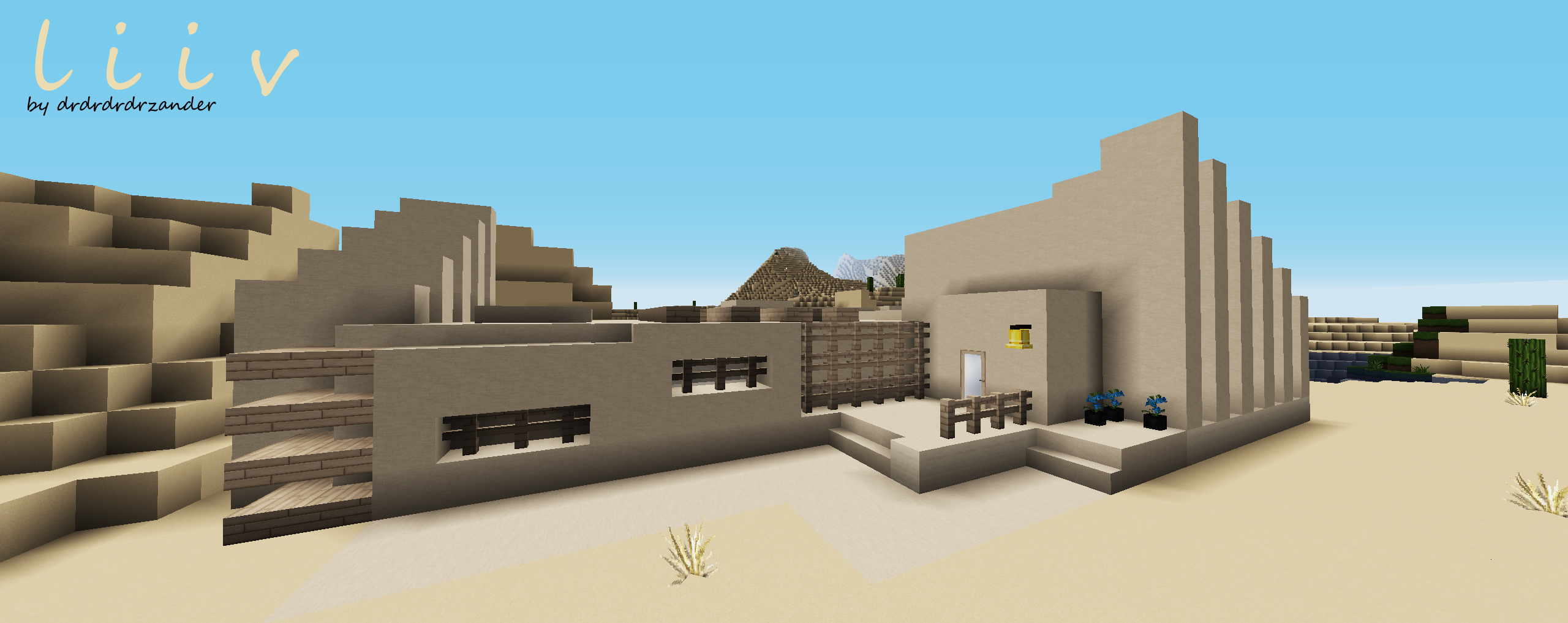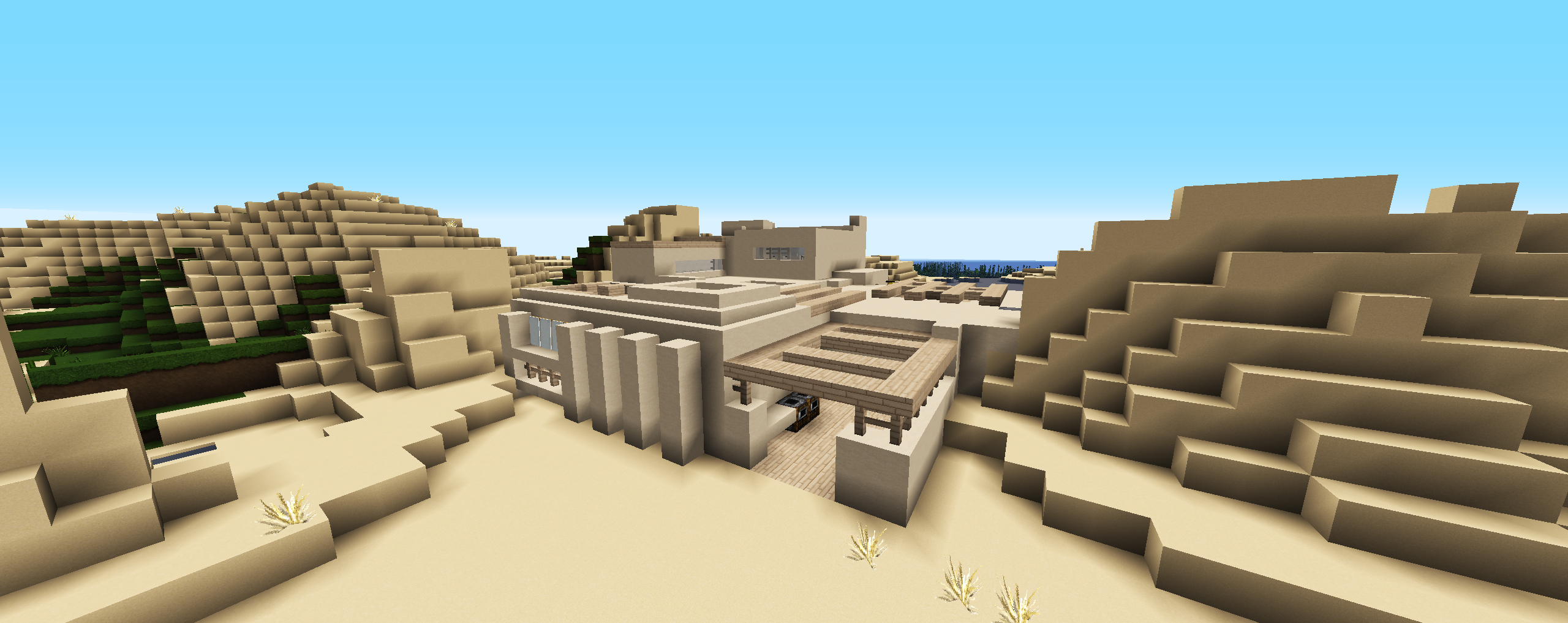 Anyway, this is an older project of mine. I had it ready for a long time, just too lazy to upload it. What I've built here is a little desert villa. With a total of 3 bedrooms, a large kitchen living room and an extra bar, this house offers an oasis in the middle of the desert.