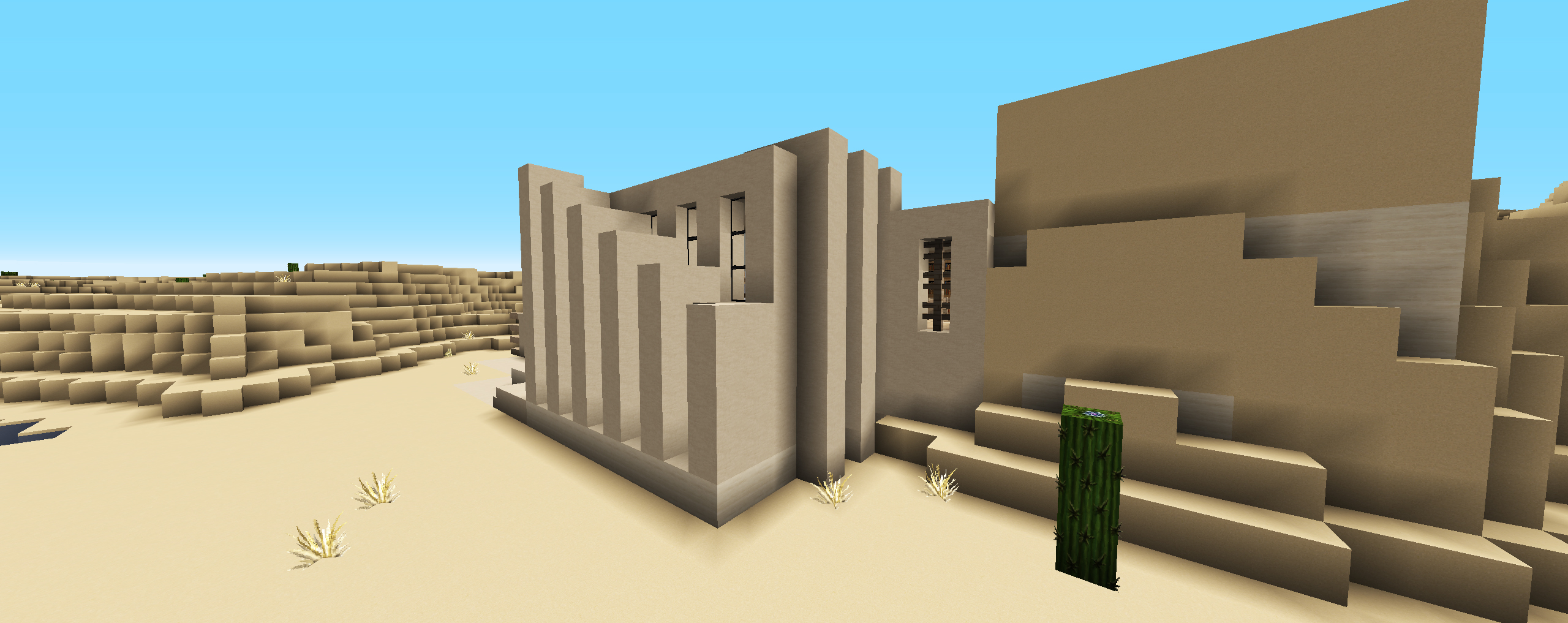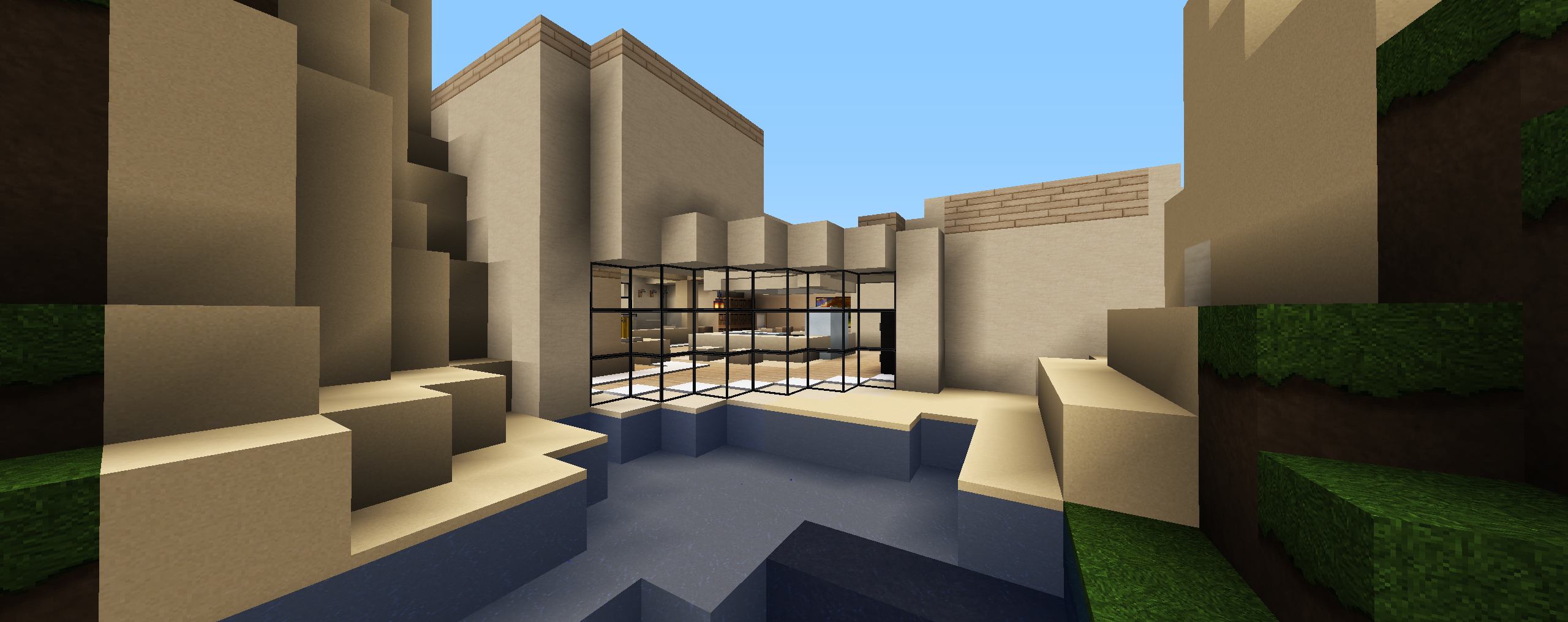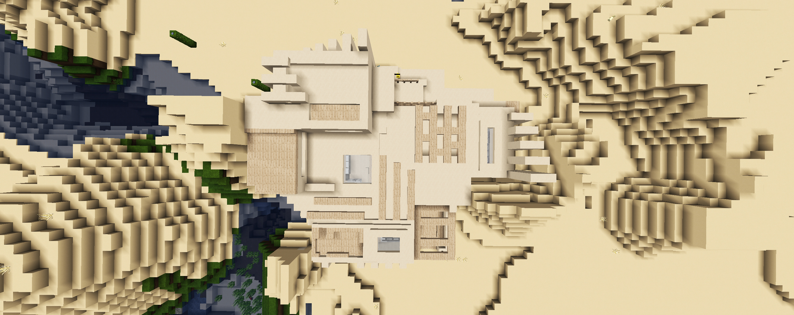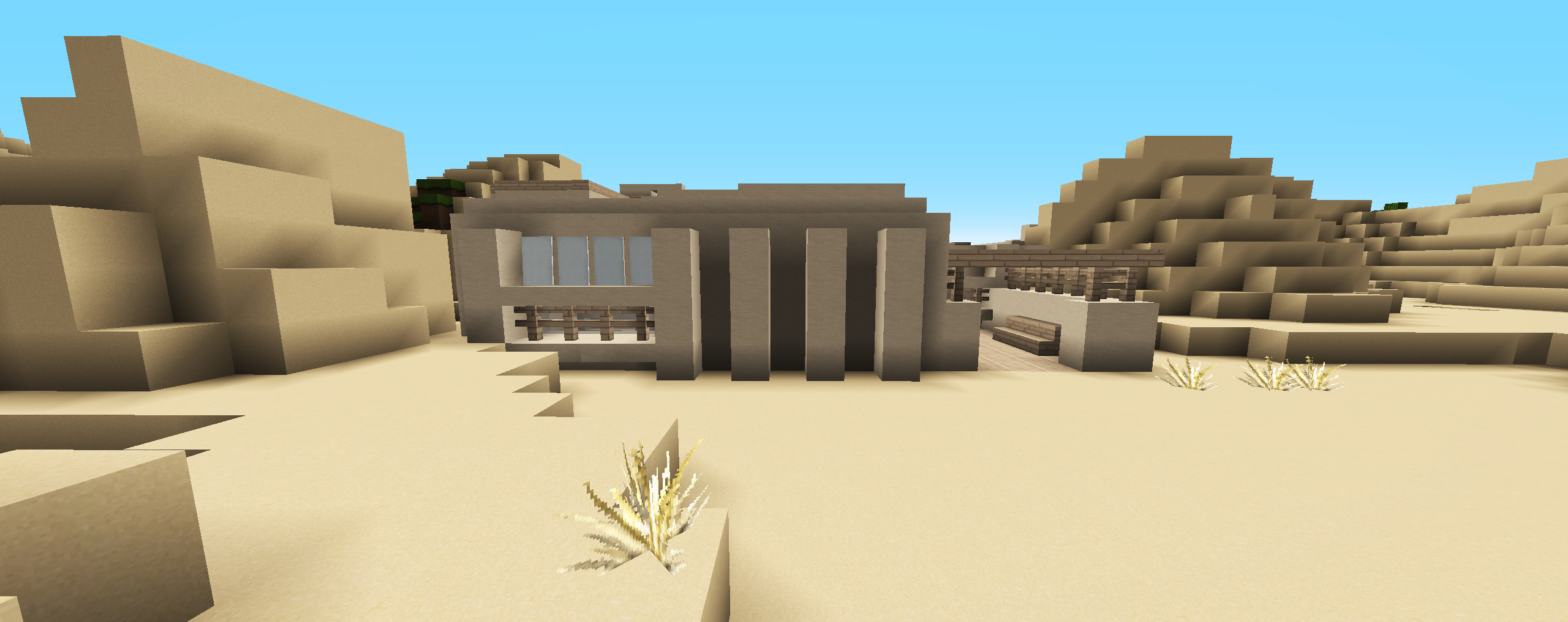 Anyway, this is an older project of mine. I had it ready for a long time, just too lazy to upload it. What I've built here is a little desert villa. With a total of 3 bedrooms, a large kitchen living room and an extra bar, this house offers an oasis in the middle of the desert.