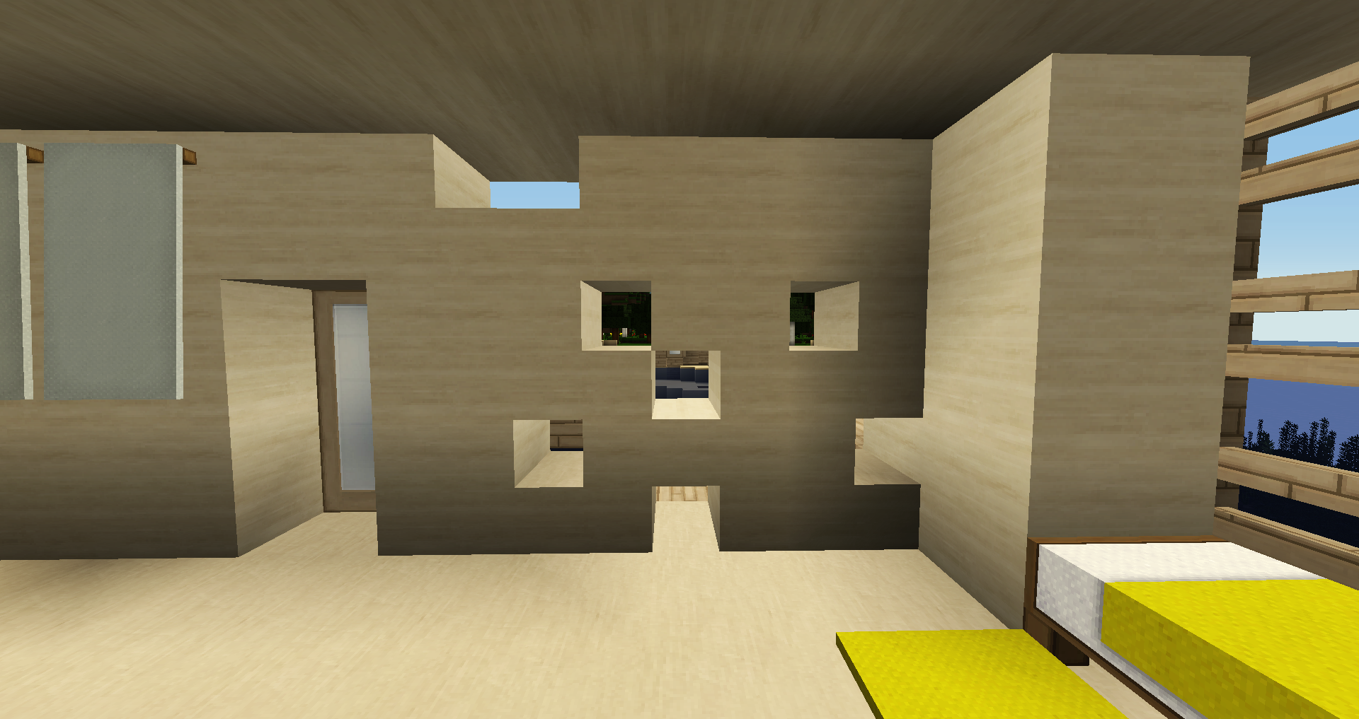 However here is another project: "Purity". Originally it should have had another name but I forgot it and so I decided to name it purity. Lately I see that I build different. I don´t build the ceiling with wood anymore, I use less windows and I try to customize the ceiling. Interesting how the own style changes over time.