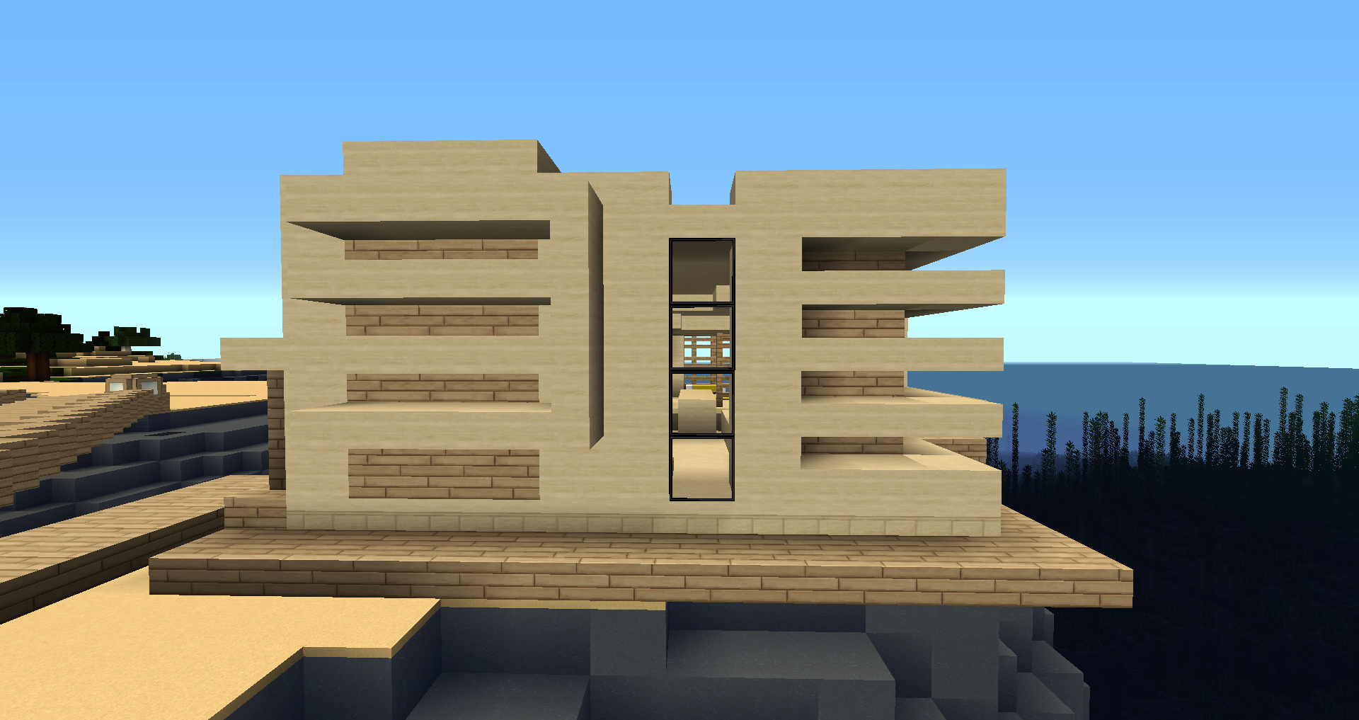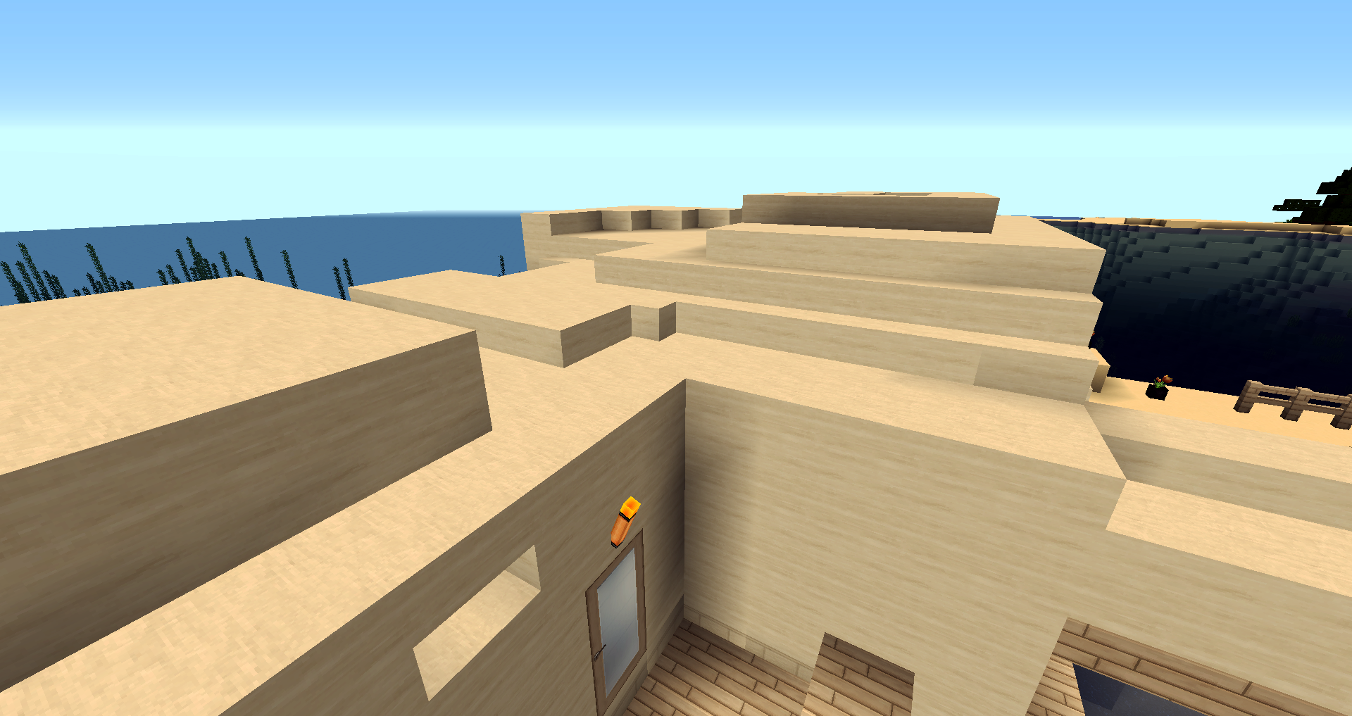 To "Purity" itself....if you look closely you see that the whole building stands on sandstone bricks. This was one of the main points along with the little holes in the wall and the use of fences as window/wall. Best thing about it is if you build it exactly like that the sun would shine right through the little holes which creates a beautiful setting within the building. (And of course balcones.)