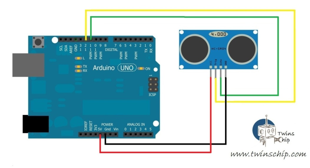 Ultrasonic sensor is a sensor that works on principle similar to radar or sonar. It generates high frequency sound and calculate the time interval between the sending of signal and the receiving of echo. Therefore, ultrasonic sensor can be used to measure distance. HC-SR04 ultrasonic sensor consists of a transmitter, a receiver and a control module.
