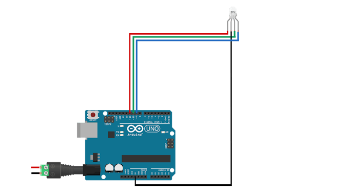 ►To produce other colors, you can combine the three colors in different intensities. To generate different colors you can use PWM to adjust the brightness of each LED.
