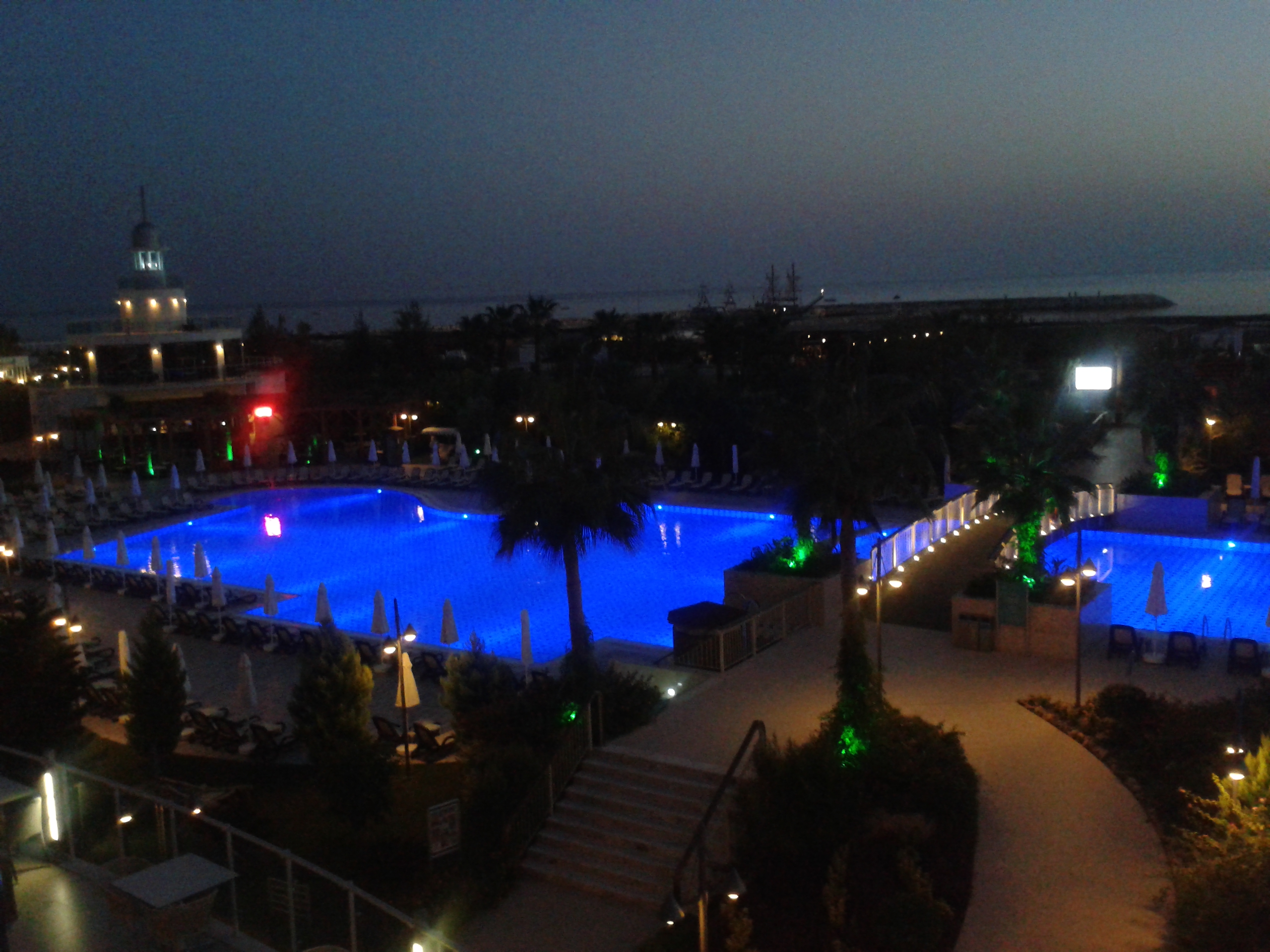 In the evening, the hotel was fantastically lit and you could enjoy the sea view while sipping a refreshing cocktail.