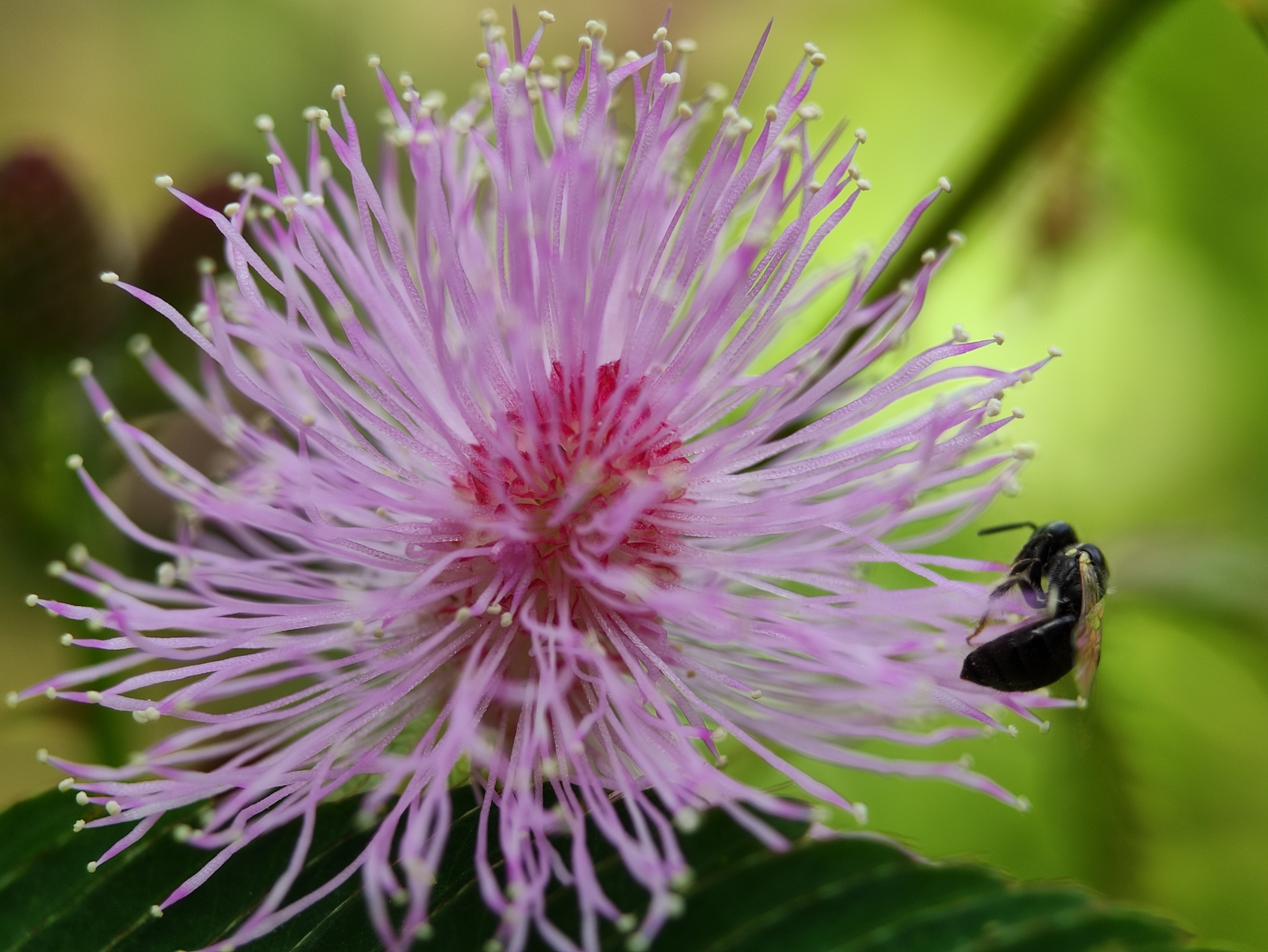 Today I found an insect looking for honey on a flower in the forest. The insect is so small that it easily sucks up the honey found in the flowers in the forest.