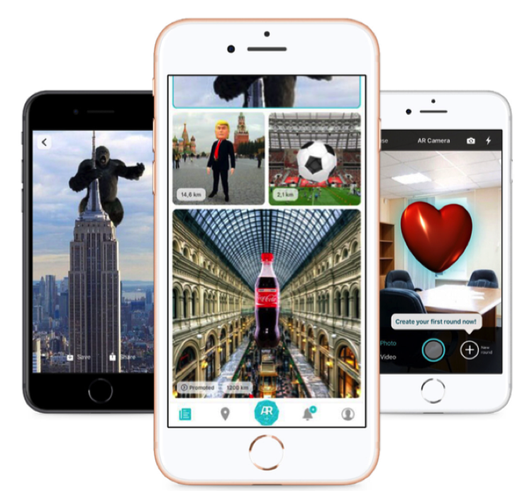 - AR Social. Platform for creating AR-objects and publishing impressions about them. Each participant can evaluate the objects of augmented reality (advertising, characters), discuss them in the chat and leave feedback. The task of AR Social is to introduce 3D objects into the everyday life, to make technology familiar and accessible, like a navigator or online map.