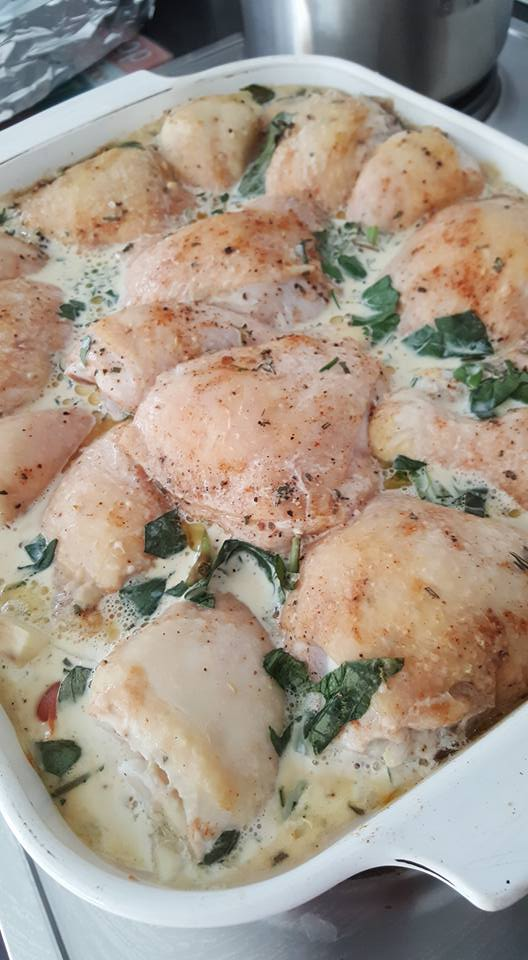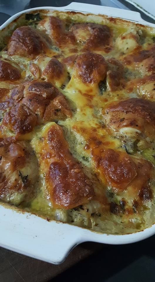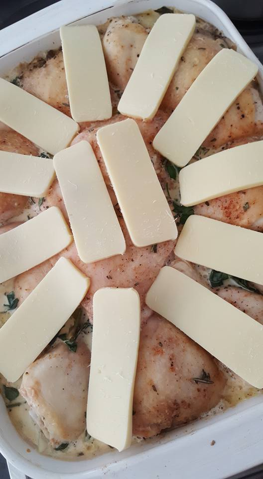 Now this is one I will definitely be making, sounds so delicious and super easy. I've made one where you put raw rice into base, top with sauteed mushrooms, onions and peppers, chicken pieces -thighs and drums certainly the best;) topped with mushroom soup powder and chicken stock mix, also nice and easy but your version will be kinder for the carb conscious family members;)