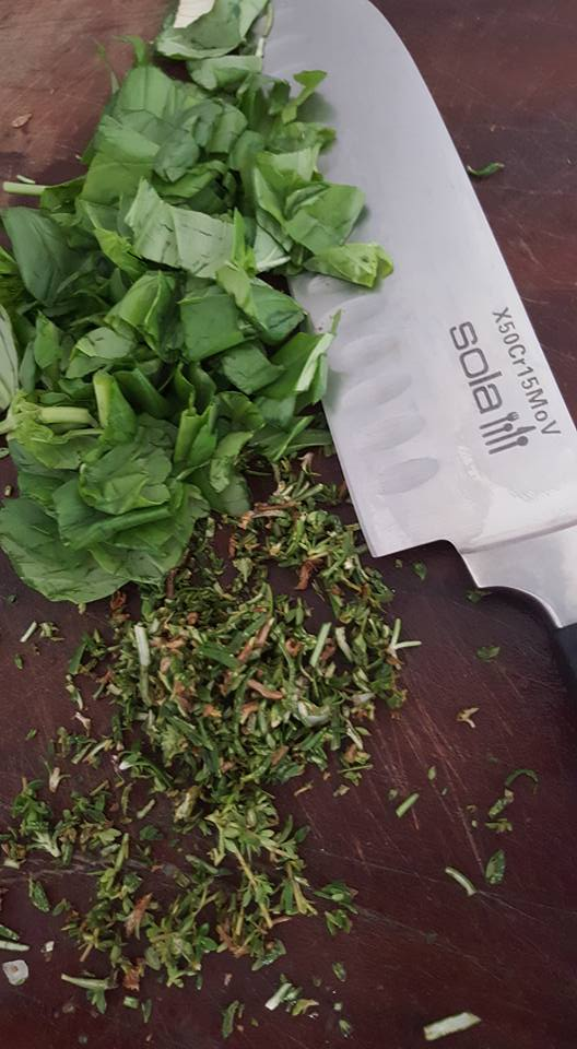 Added a little chopped basil, lemon thyme and rosemary