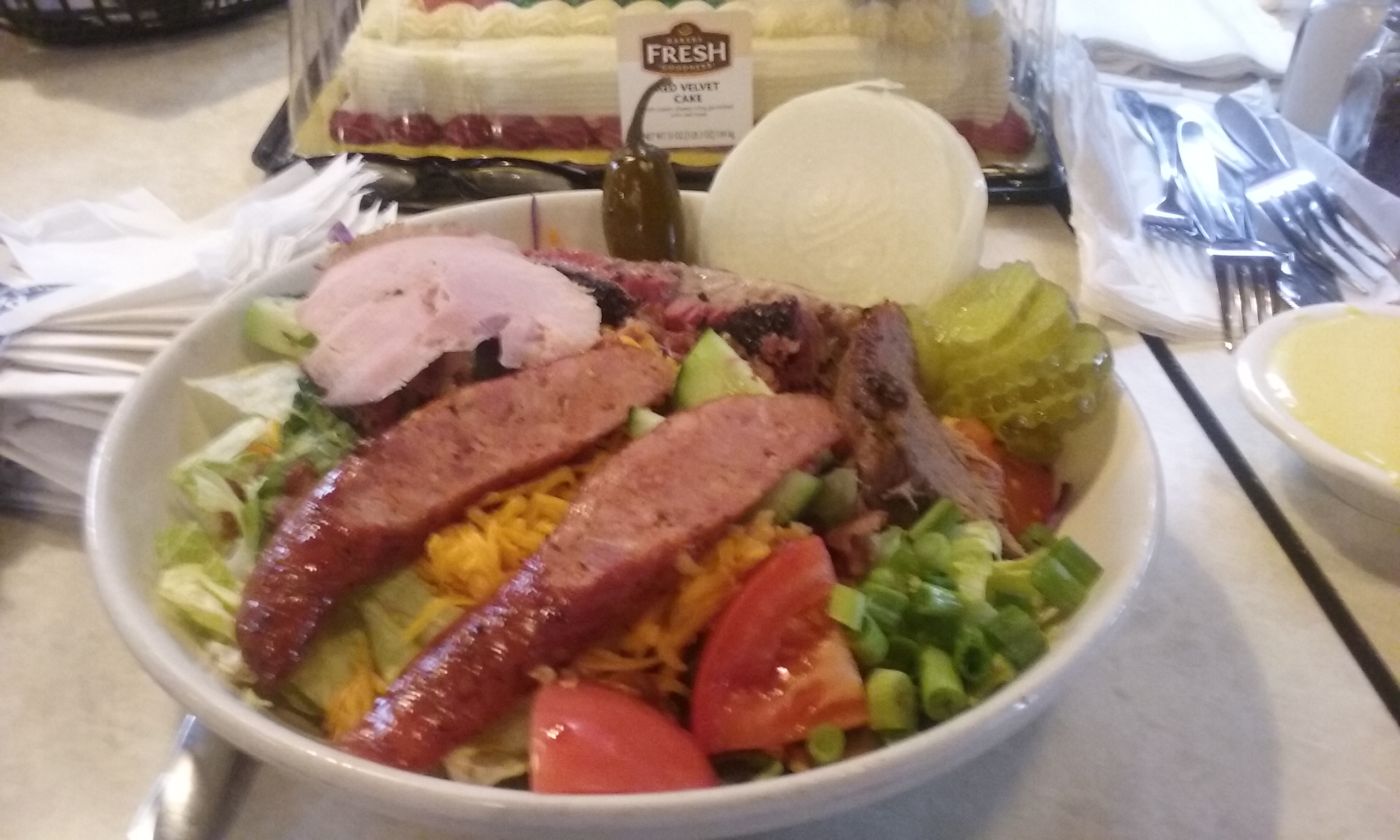 And yes, I always get the Chef Salad with 3 different types of meats. Then I nibble a bit from it and from everyone else's plates. That's what children are for. Then get a to-go bag for myself. But I'm trying to reduce my A1C for my Diabetes. This is my year to accomplish it.