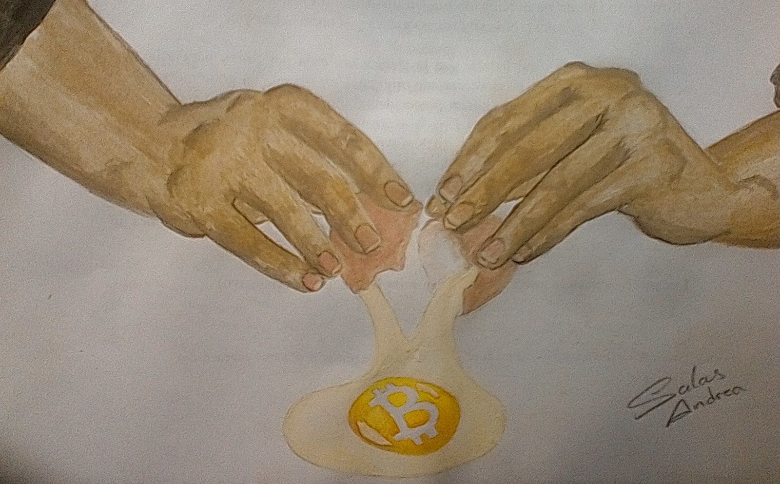I show you a little step by step this illustration done in watercolors. An egg whose yolk is the symbol of Bitcoin.