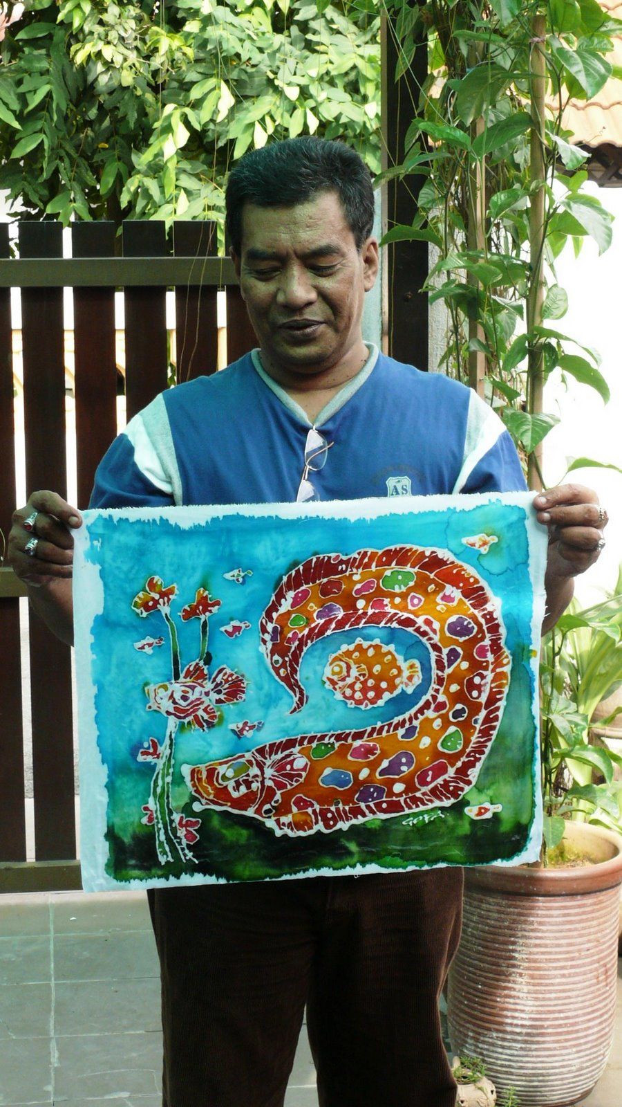 - Use batik color. Draw with big brush. No.8.