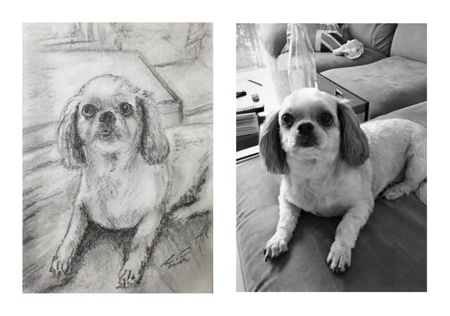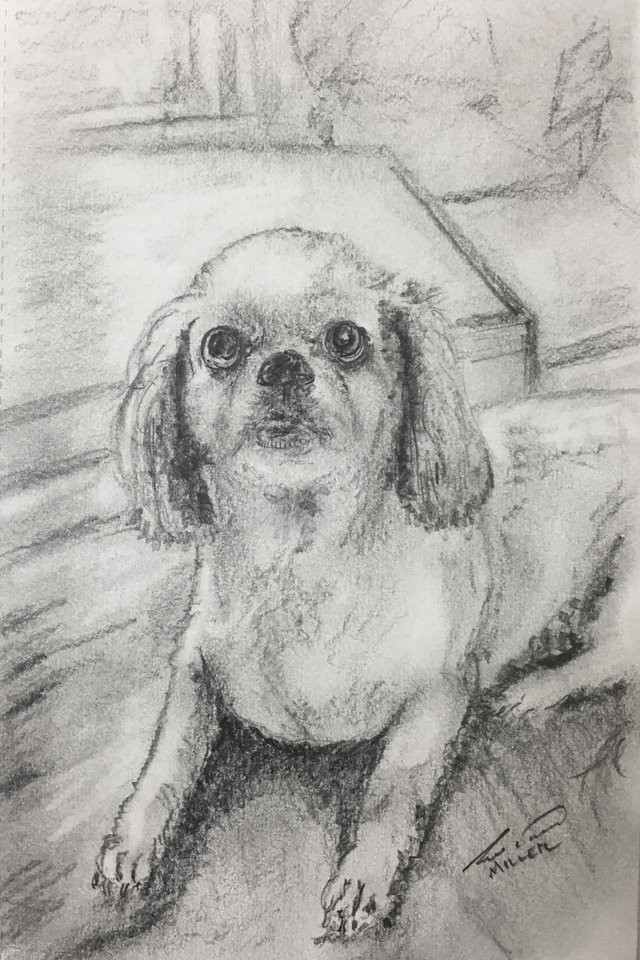 And was inspired by my buddy's dog Nadi. She was born in Thailand and is very Loved and Spoiled by @gooddream. He blogged recently about her trip to the groomers; Doggy beauty salons... one thing I definitely will miss about Thailand .. one of the last before they both start a new adventure. @gooddream and Nadi are heading from Thailand to Vietnam to begin a new chapter in their lives. As many of you know, I am always looking for inspiration in order to fulfill my creative addiction. This was not a hard choice to make. For one, I Love dogs (and all pets in general), and secondly, Nadi was looking so cute in her post grooming photo! I couldn't resist the temptation to further practice my pencil drawing skills. With @gooddream's permission, I printed off the photo and got to work.