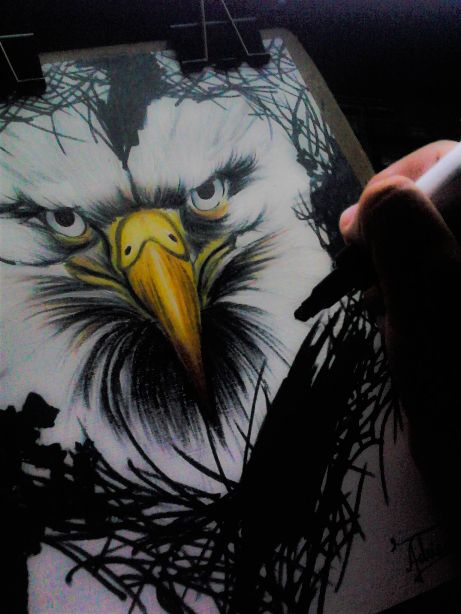 En esta ocasión realice un dibujo del rostro de un Águila blanca totalmente a color y haciendole algunos efectos abstractos. Para muchos el águila blanca es el rey de las aves, pero en el sentido espiritual, para algunas personas como en mi caso, lo ven como simbolo de fuerza, sabiduria y libertad.