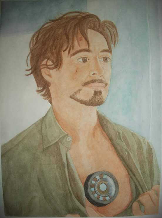 Hoy presento mi dibujo (yep, mientras estudiaba aprendí que las acuarelas son una técnica del dibujo, no de la pintura, curioso. Retomemos) de Tony Stark <3