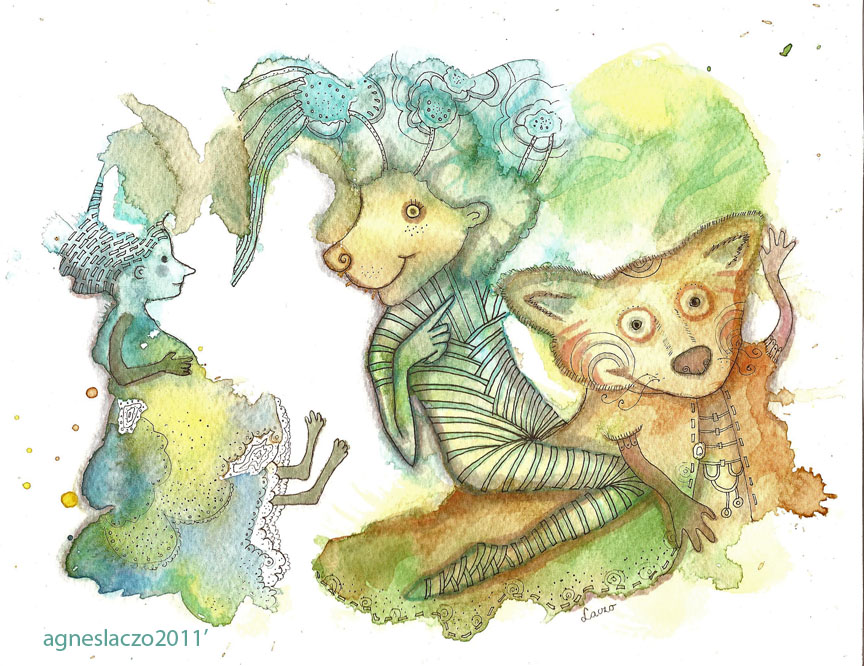 Fox ride - Coffee spill paintingagneslaczo (66)in #art • 8 years ago An illustration from the past. Made with coffee spills and watercolor. I just love turning shapes into ... more than shapes :-) What do you think? #colorchallenge #drawing #life #fun