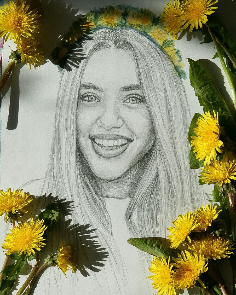 Drawing Girl and flower, I came up with quickly but when I started to draw I had problems at work,so to speak, the pencil broke and ceased to draw,as if magic is some sort of settled into this pattern.But I did and now happy with my work and give it to you my good.