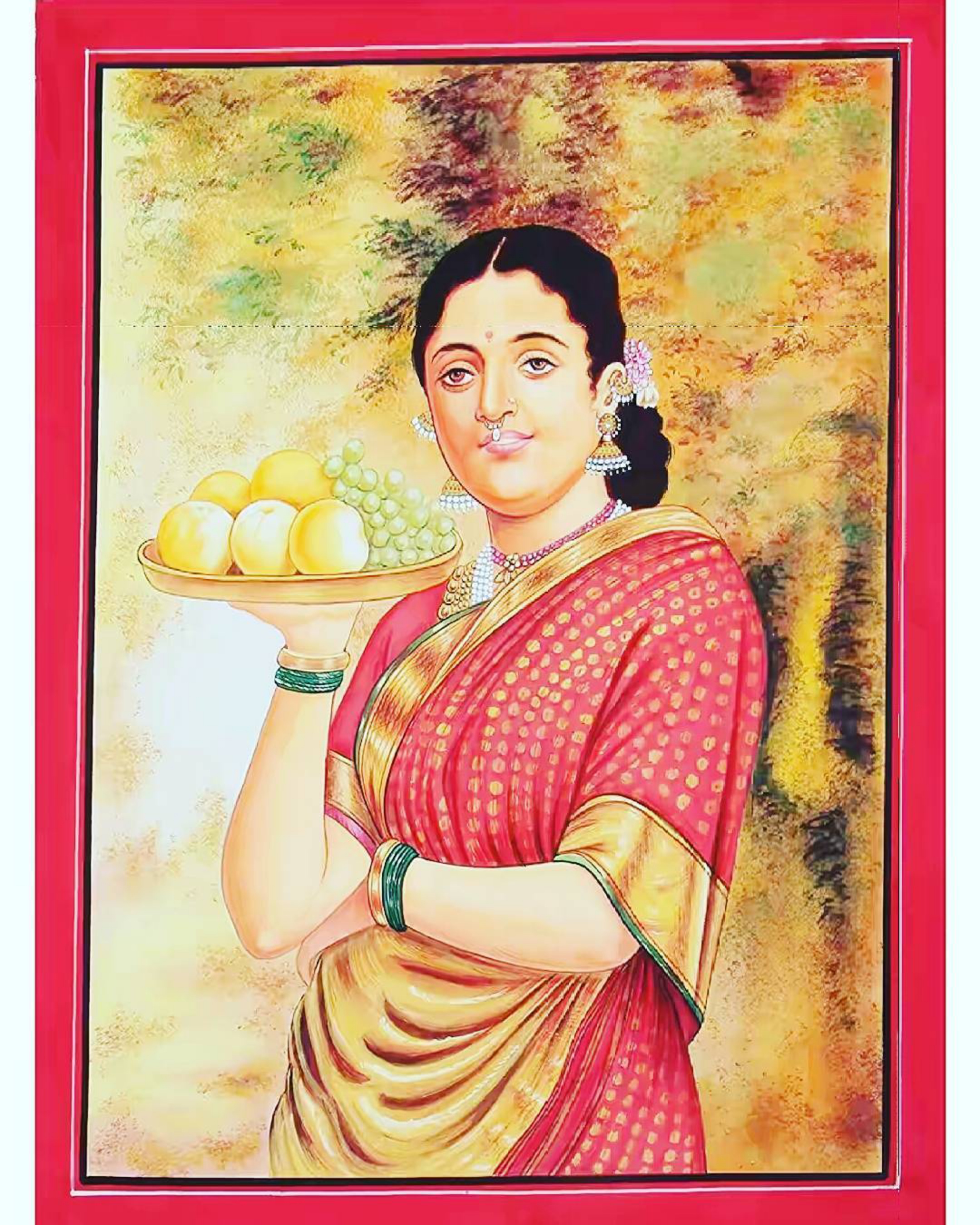 Raja Ravi Varma, The Maharashtrian Ladyajarts (25)in #art • 8 years ago (edited) Raja Ravi Varma The Maharashtrian Lady Handmade Miniature Art Work On Paper Real Gold Work #artist #steemit #painting