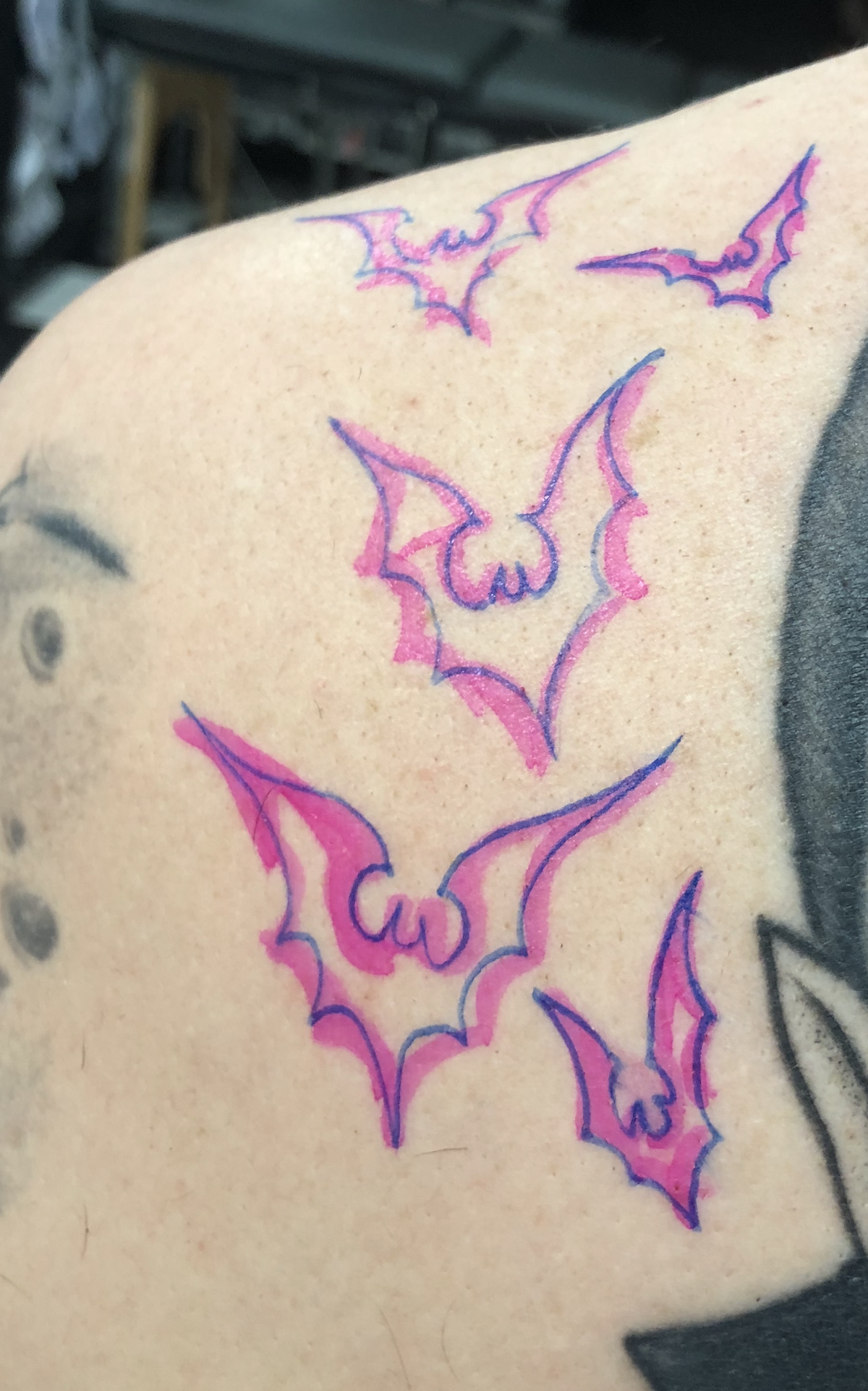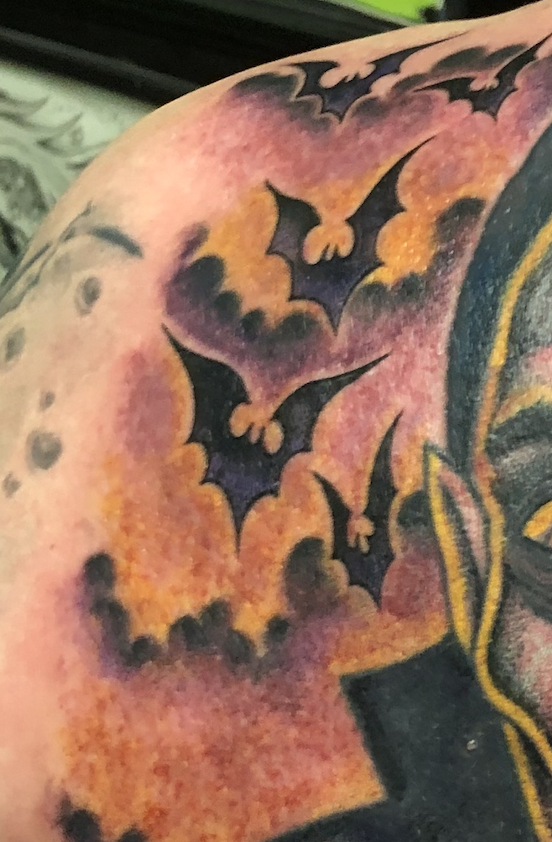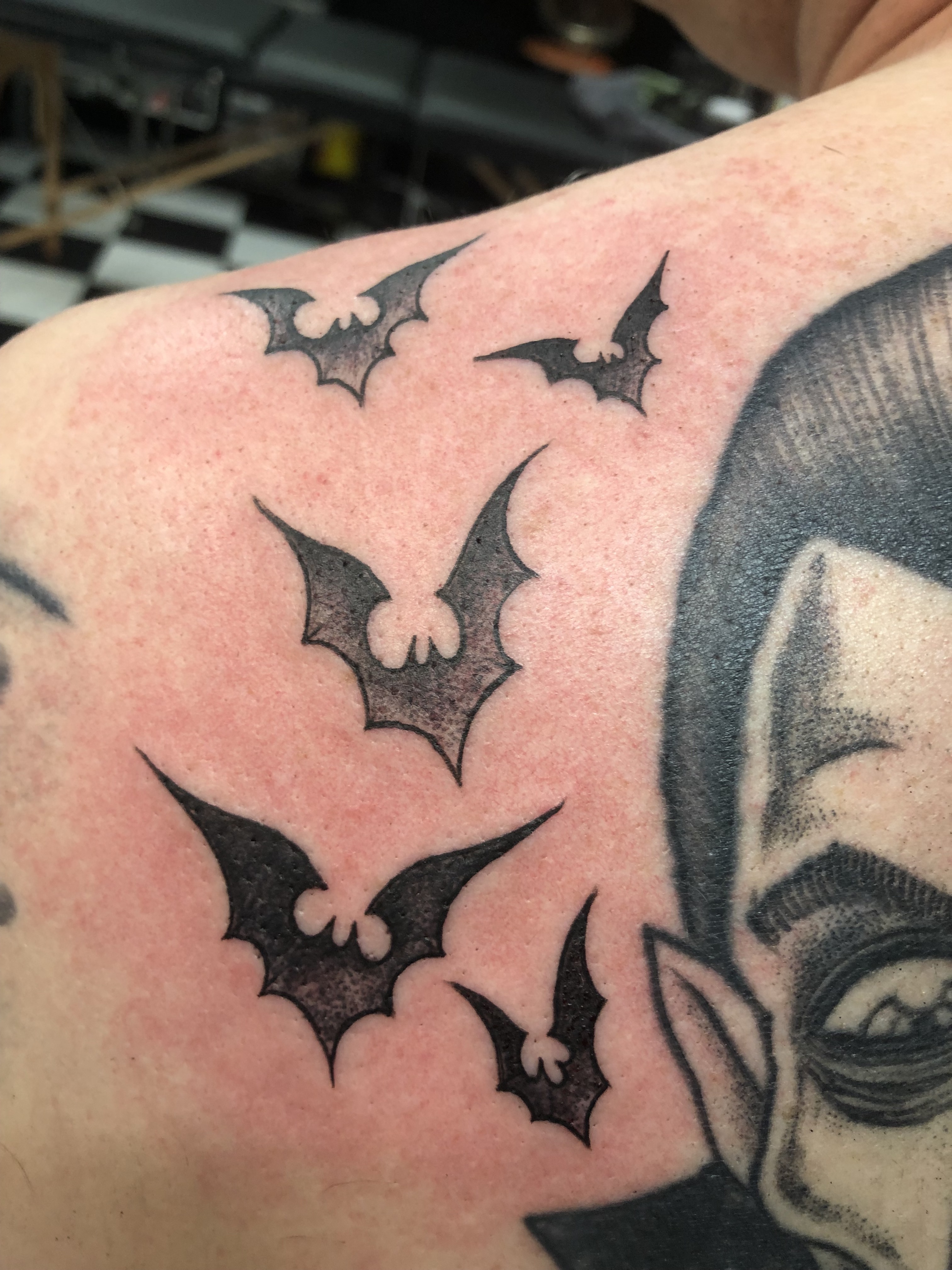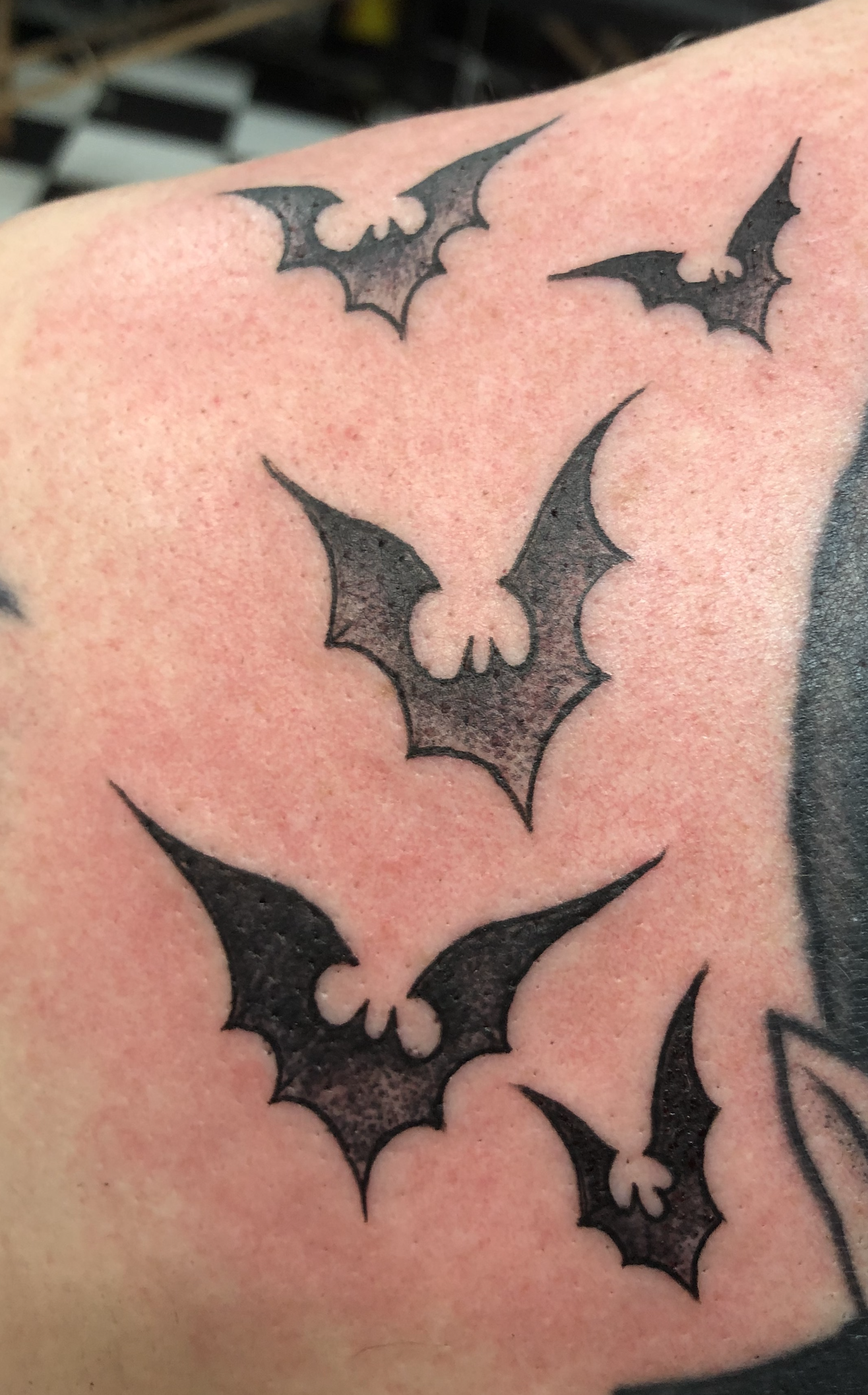 I coloured a Dracula tattoo but I wanna focus on the bats I did for it as I did them freehand