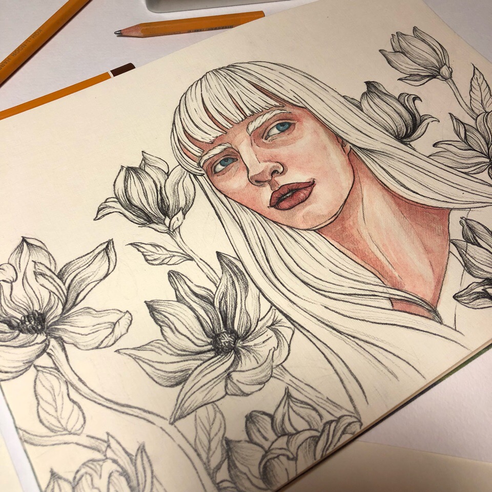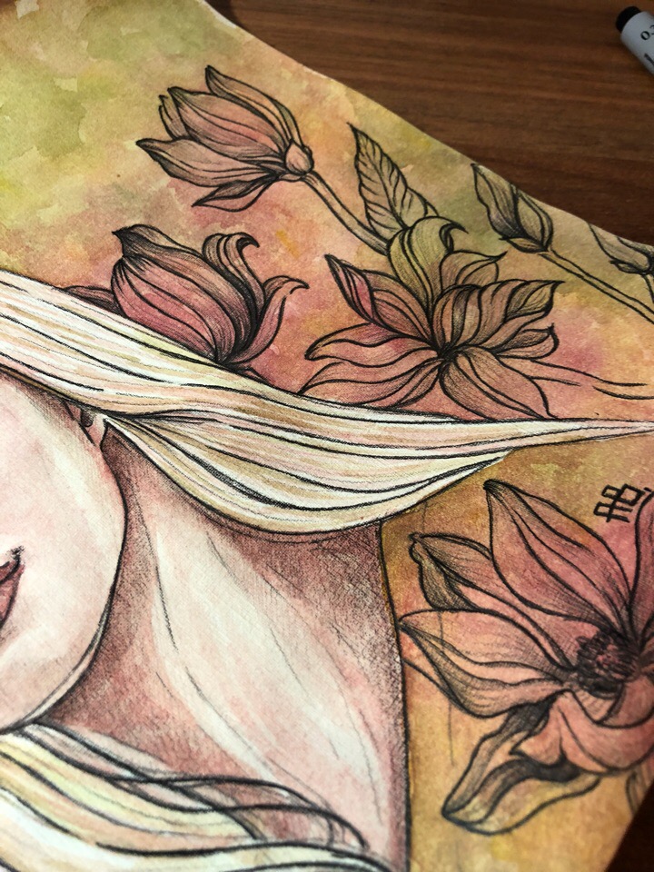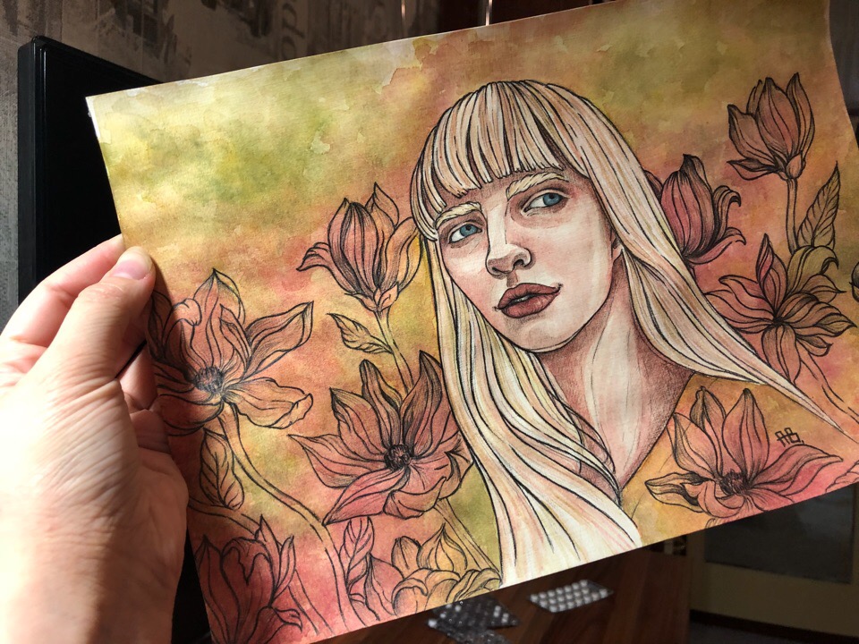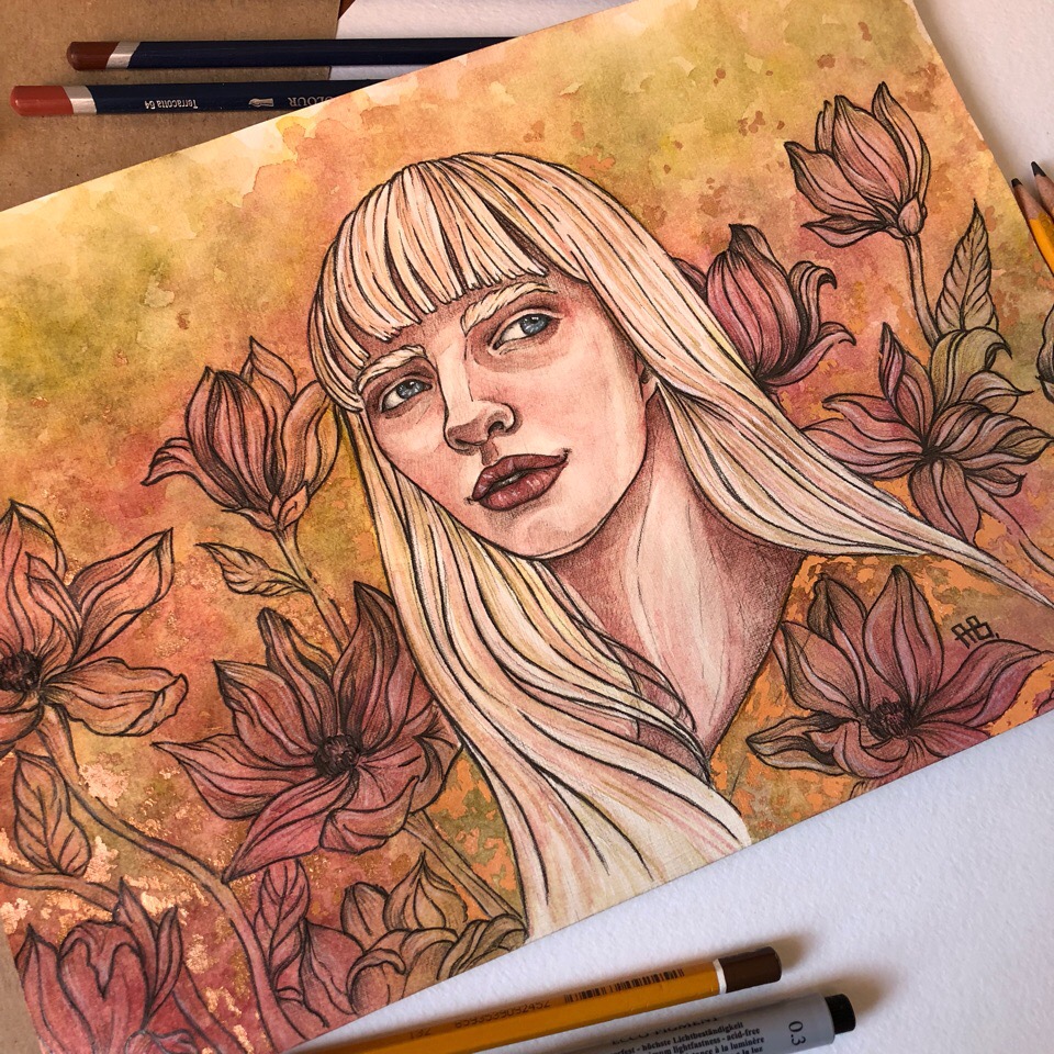 And now a little about the materials: the base is made with a graphite pencil, then layers of watercolor and detail elaboration with a leaf, liner and white watercolor pencil ✨