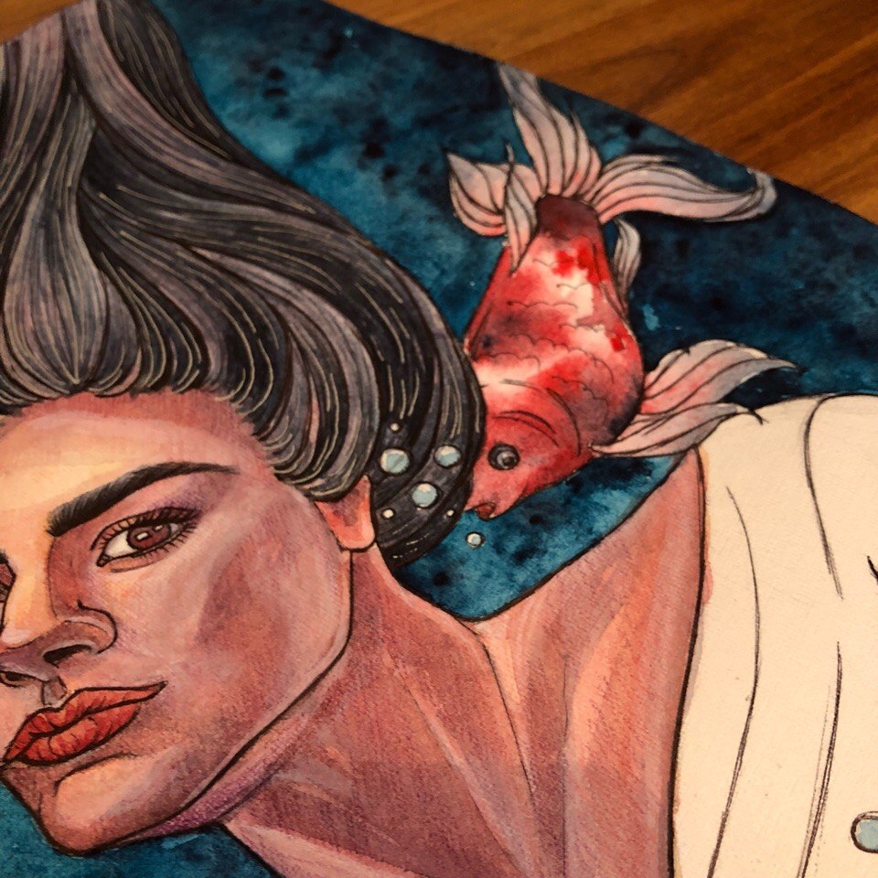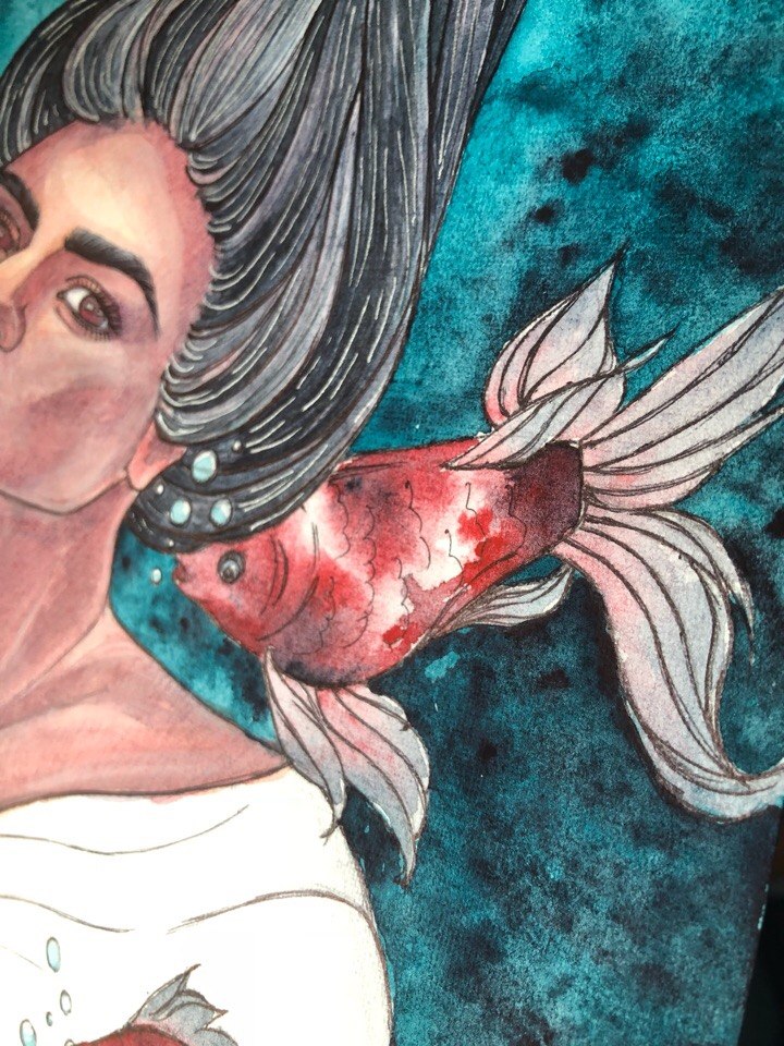 Cool artwork. The fish seems like it is really in motion and swimming!