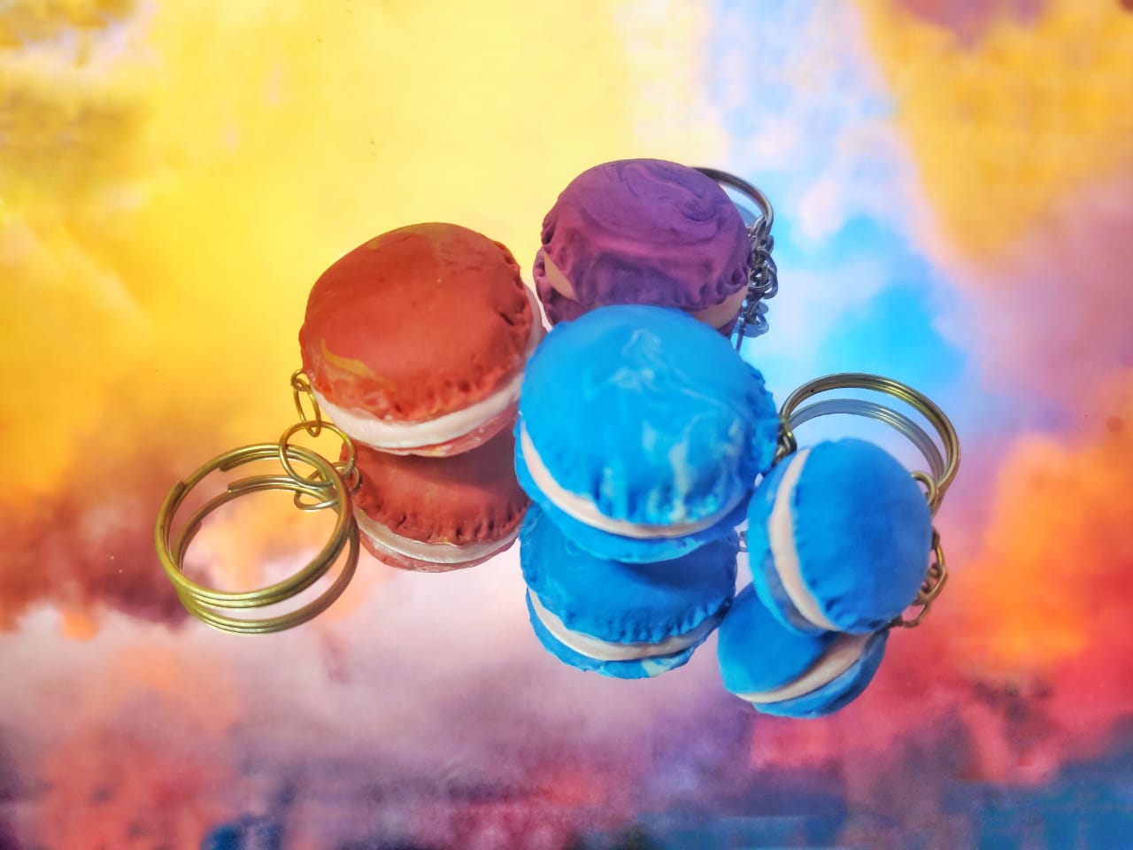 These are few keychains i made with air dry clay and painted them with acrylic paint, also i took these photographs by placing them on a mirror and putting it on my laptop's keyboard with a wallpaper picture I downloaded from PINTEREST.