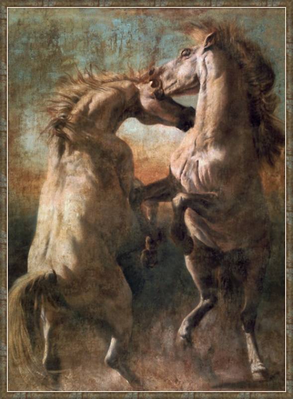 I can't believe that someone can down vote me and accuse me of plagerism and make more money than me, it's so stupid. Yes the images look similar I agree but they are not the same, it's just a coincidence, if you google horses fighting you will see many images the same. That is how they fight. Do I have to be scared that if I draw some subject someone hundreds of years ago may have by chance painted a similar thing. Yes it does look amazingly similar I agree. And it is flattering that mypastle drawing looks like a famous persons painting. But it is just a coincidence not plagerism. What annoys me is that the person accusing me made more money than me.