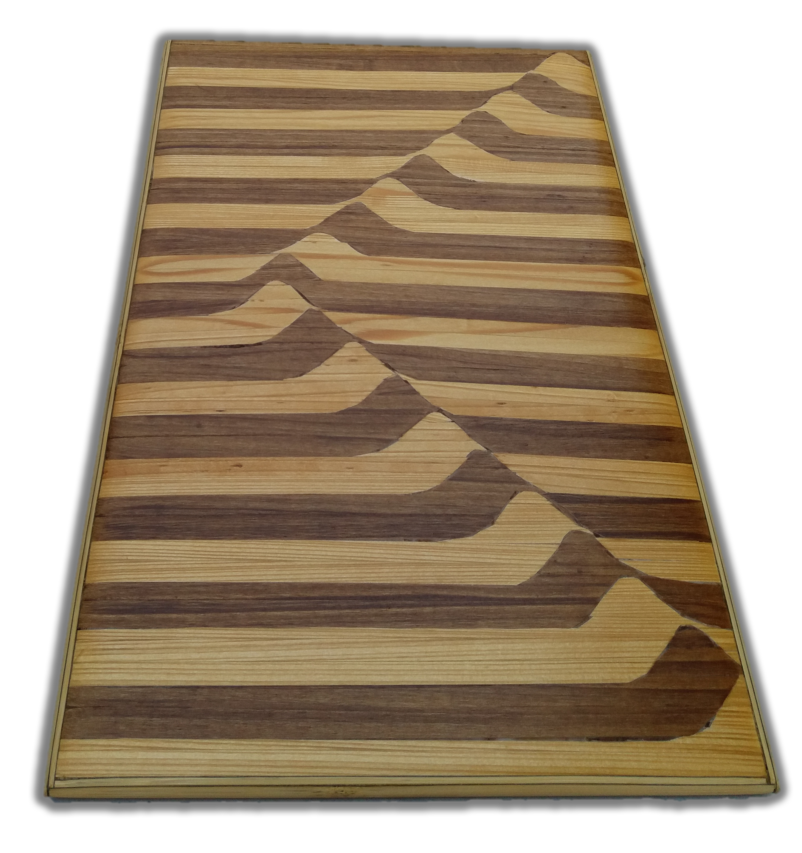 WAVEanonymous-artist (51)in #art • 8 years ago WAVE. WOODEN INLAY: MEASURE: CM 26 X 41 X 2. WOODS: WALNUT - BEECH - BAMBOO - Wooden inlay with simple 3D wave optical illusion. #geometric #creativity #wood #handcraft