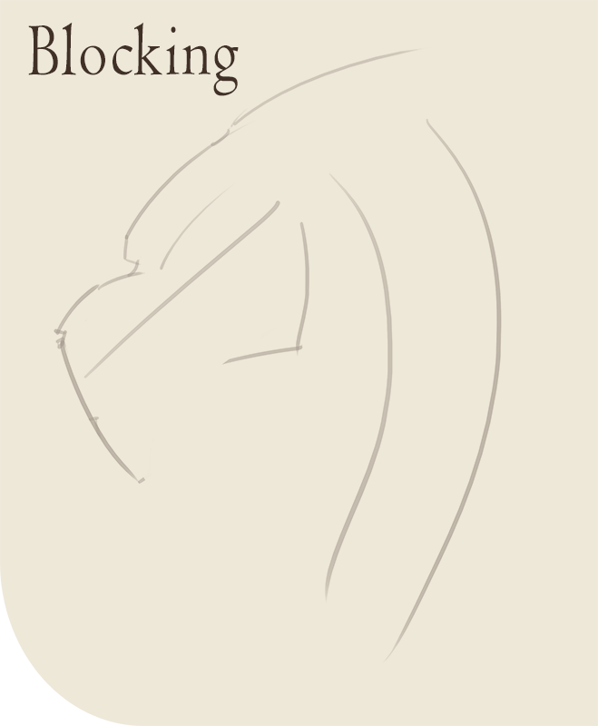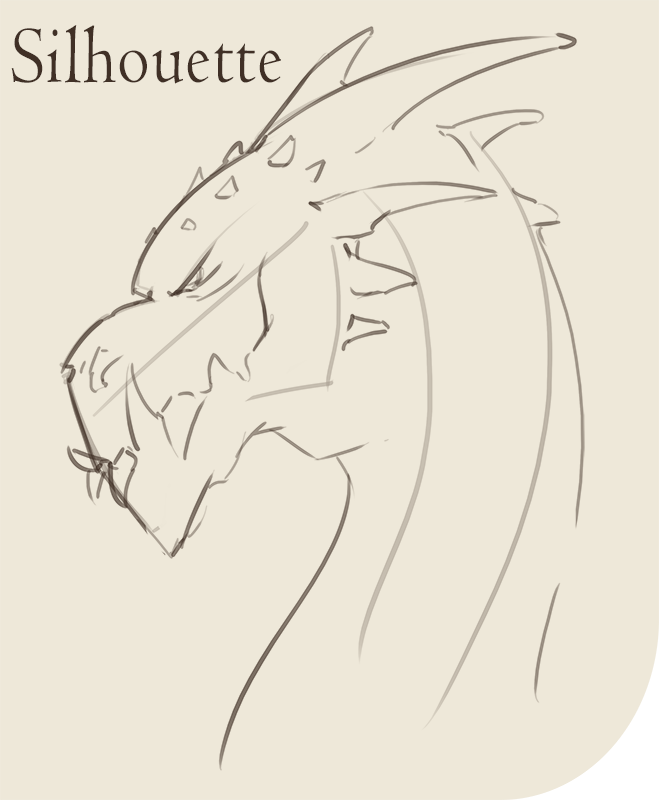 As we saw that the rhythm defines the direction, dynamic and most of time times even the spirit and attitude of our subject in the artwork, the Blocking is needed to start defining the subject itself. Because if I put two lines, even if the rhythm is just on point, we won't really know what the fuzz is all about. So we need to define what we are talking about, what is our subject. Which in this case, it is a dragon's head.