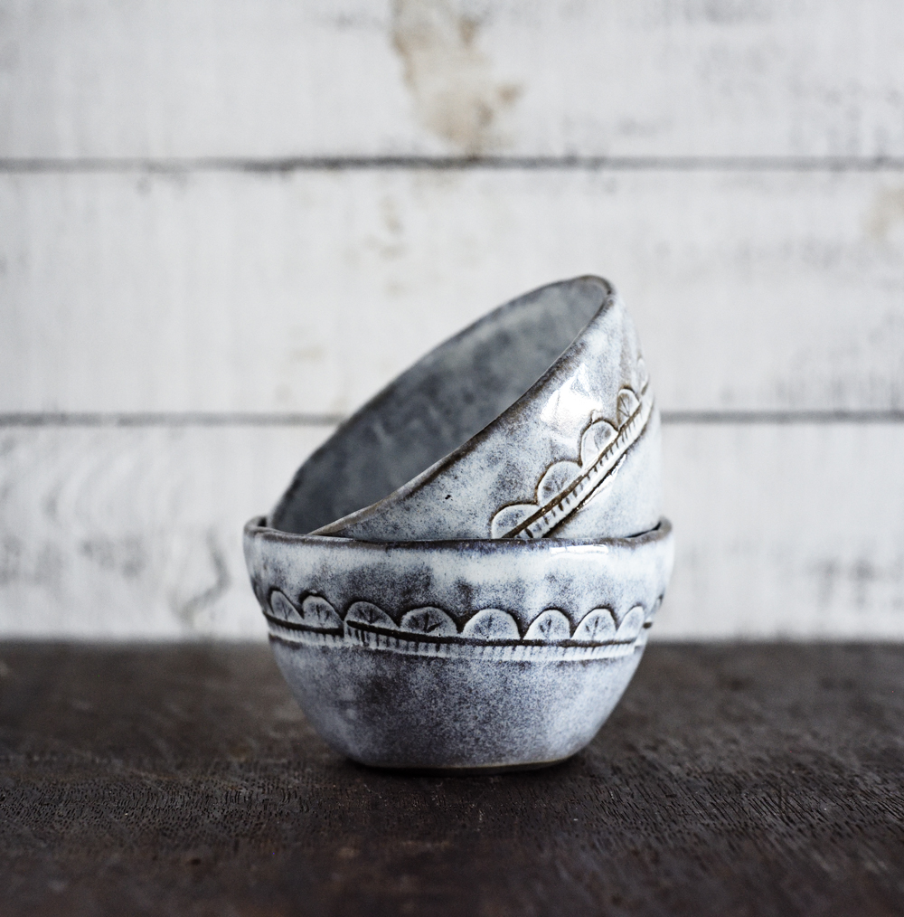 CERAMICSapobs (38)in #art • 6 years ago 2 petal rim bowls for sauces or nuts with a misty white glaze on black clay. #ceramics #handmade #clay #creative