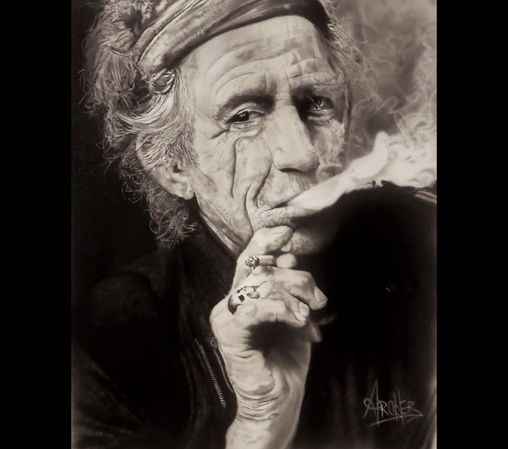 The portrait is awesome, I immediately recognised Keith, like the skull shaped ring and also the smoke looks so natural.