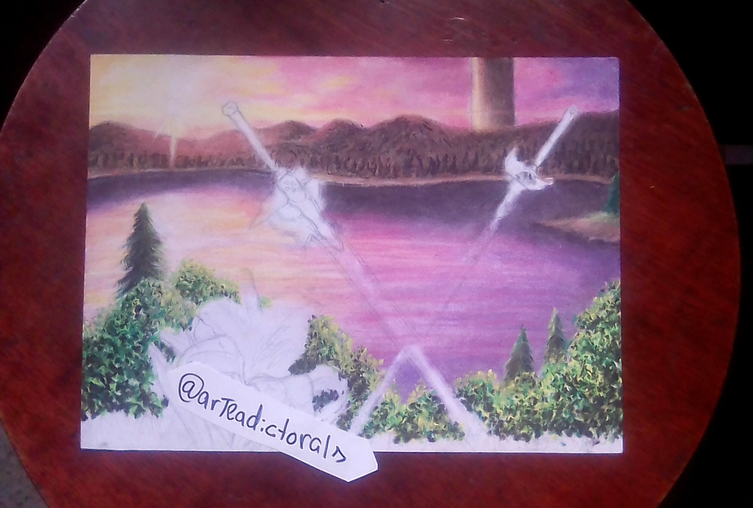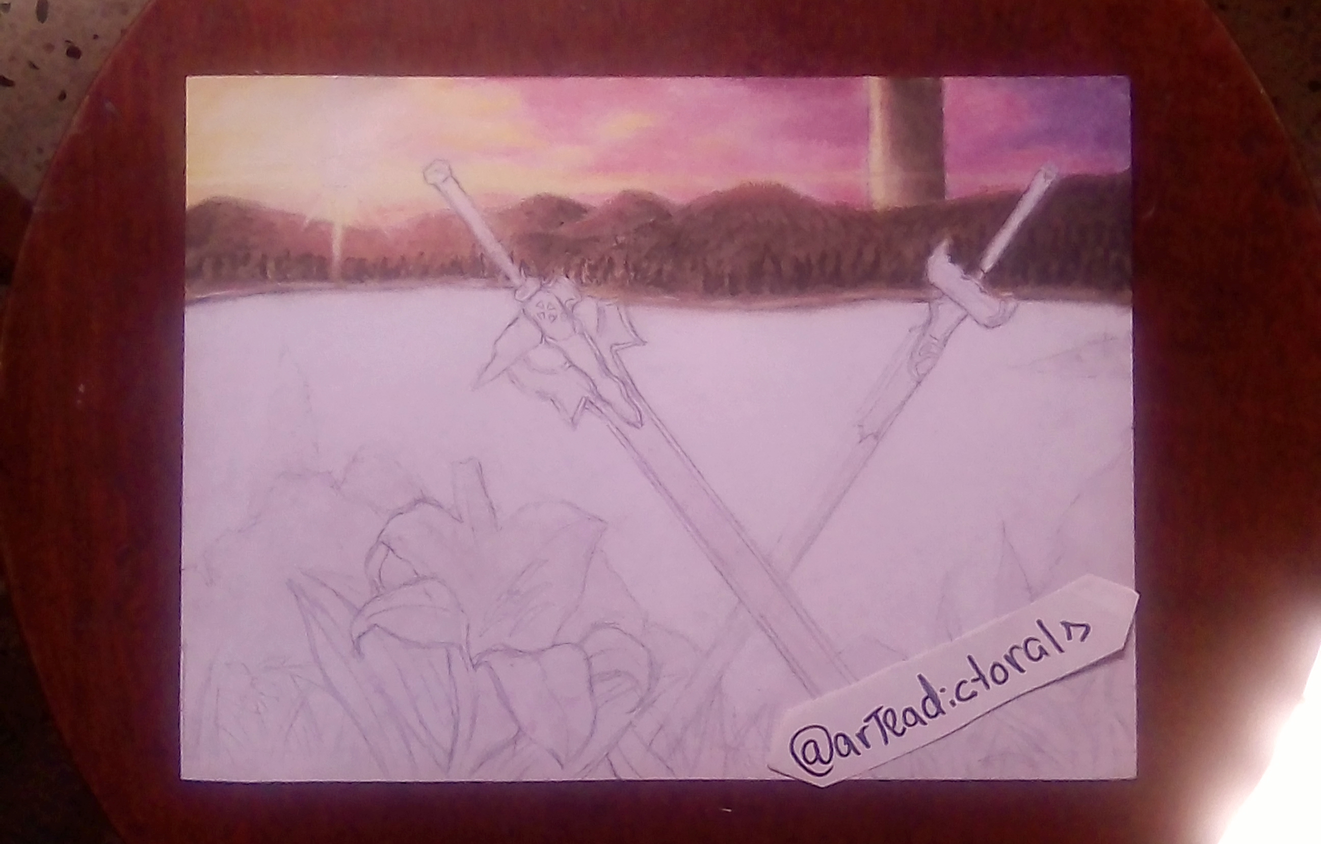 Hello everyone, today I bring you something very different from what I used to do, this time I made a landscape of an anime that I really like, which is S.A.O (SWORD ART ONLINE). I made this painting with a combination of pastel chalks and colored pencils, I hope you like it!