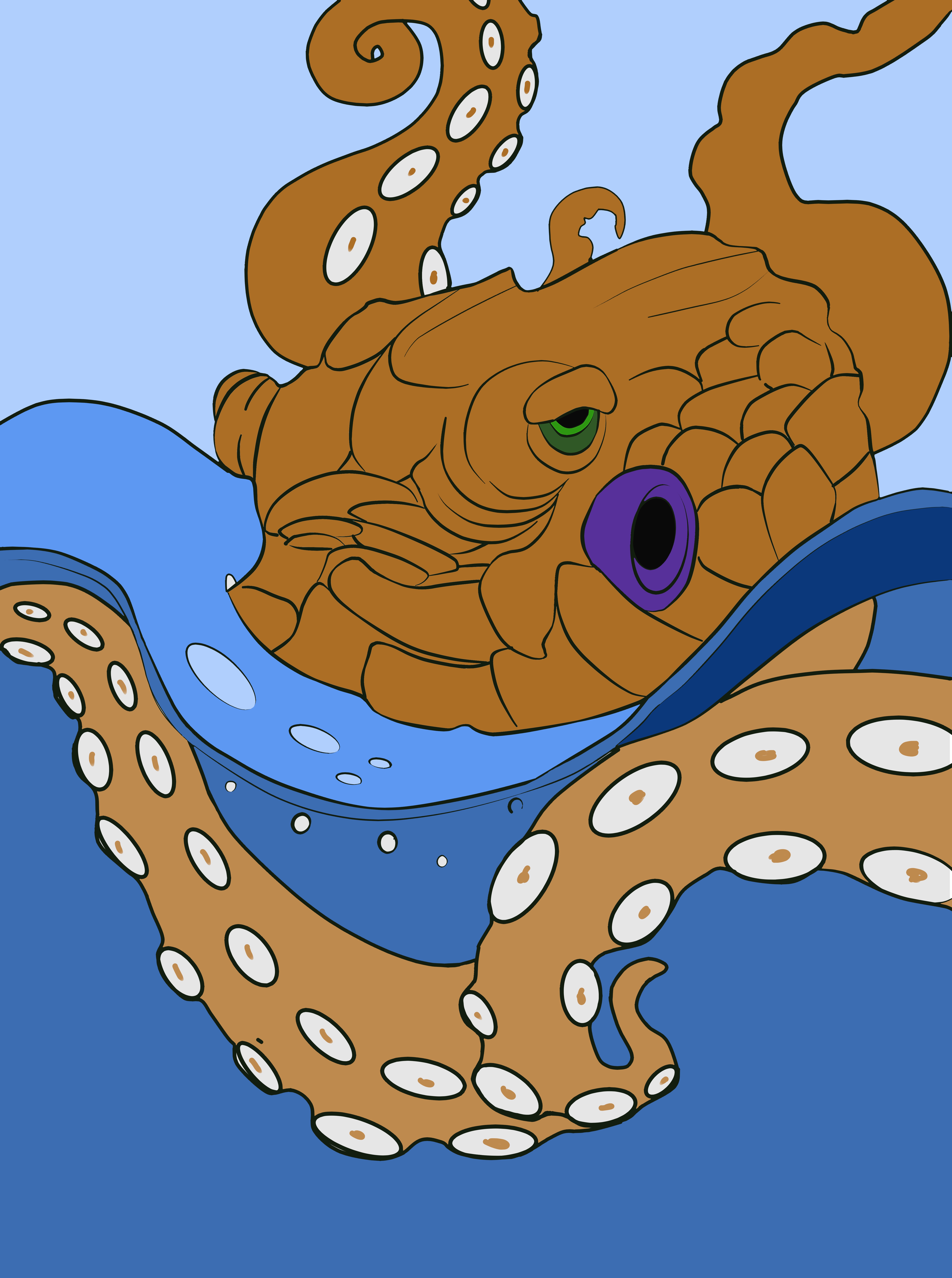 para terminar le agrego detalles al fondo del mar y los tentáculos sumergidos