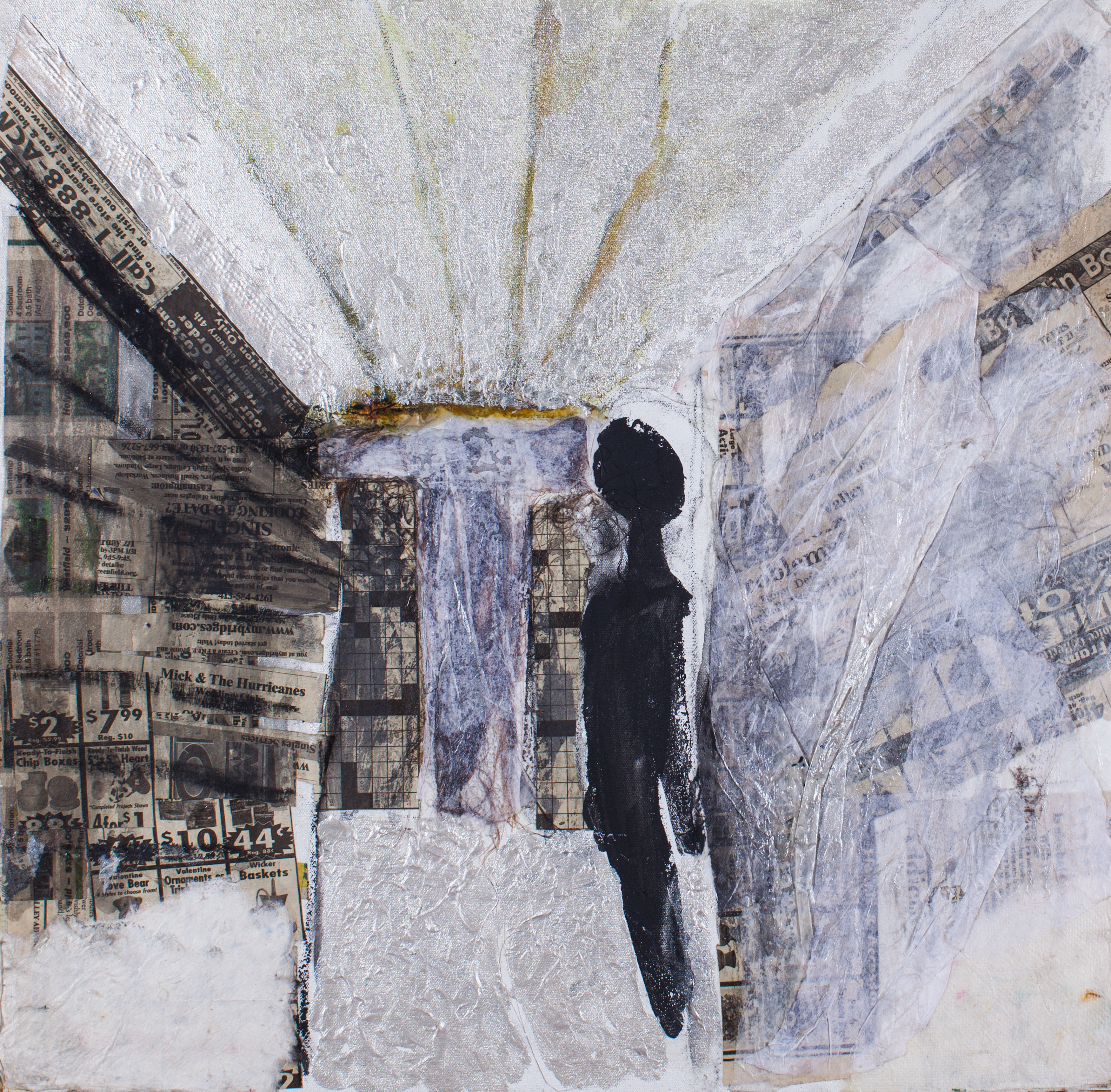 @web-gnar: Twirble is one of the @artzone.curators. He posted a few of the works he has sold in the past. Some nice tones going on in this piece. The grays and the light yellows go good with the white and the newpaper collage and the texture are nice. Its also good documentation of the work, a nice well lit photograph. Thanks for sharing.