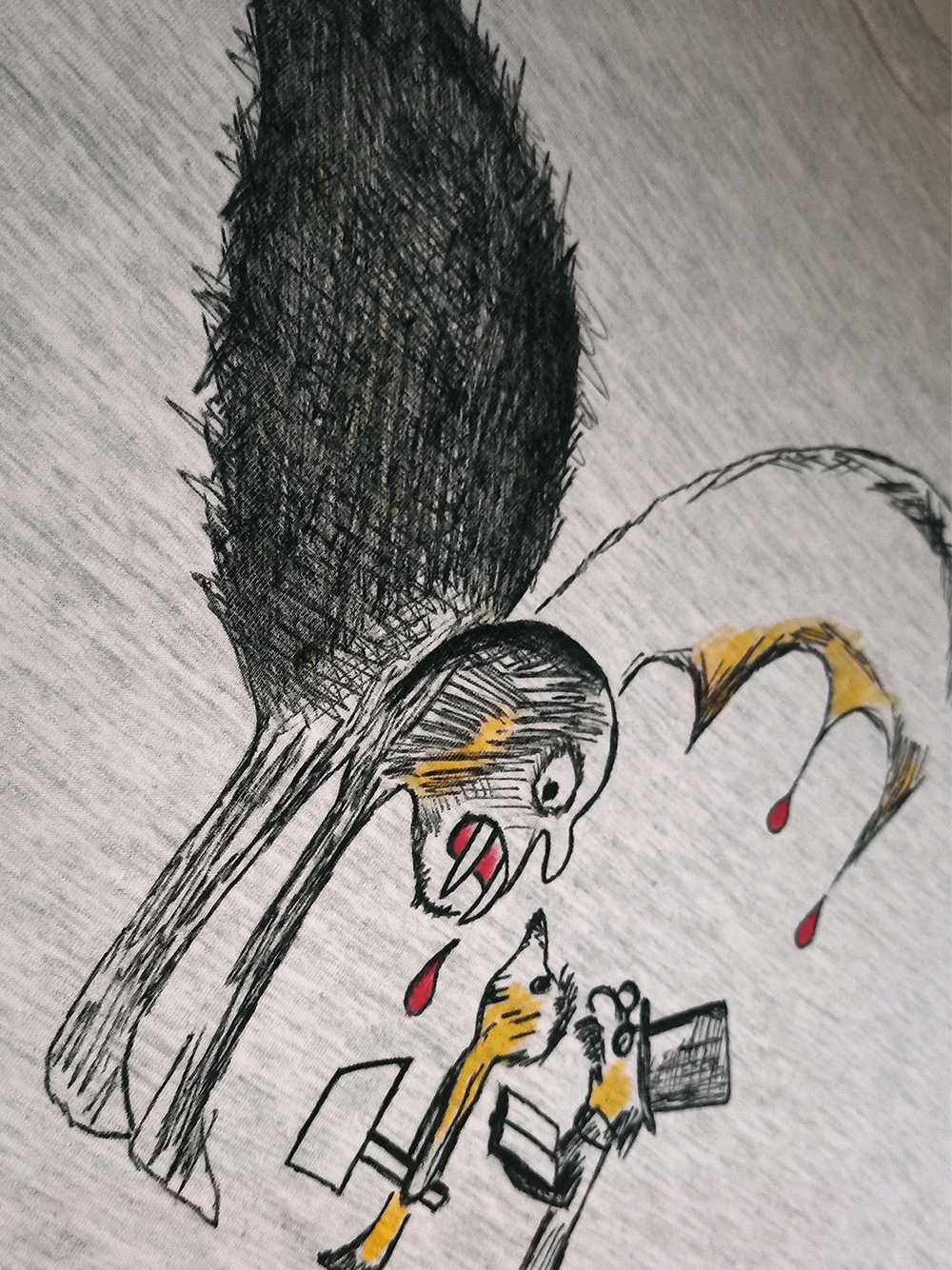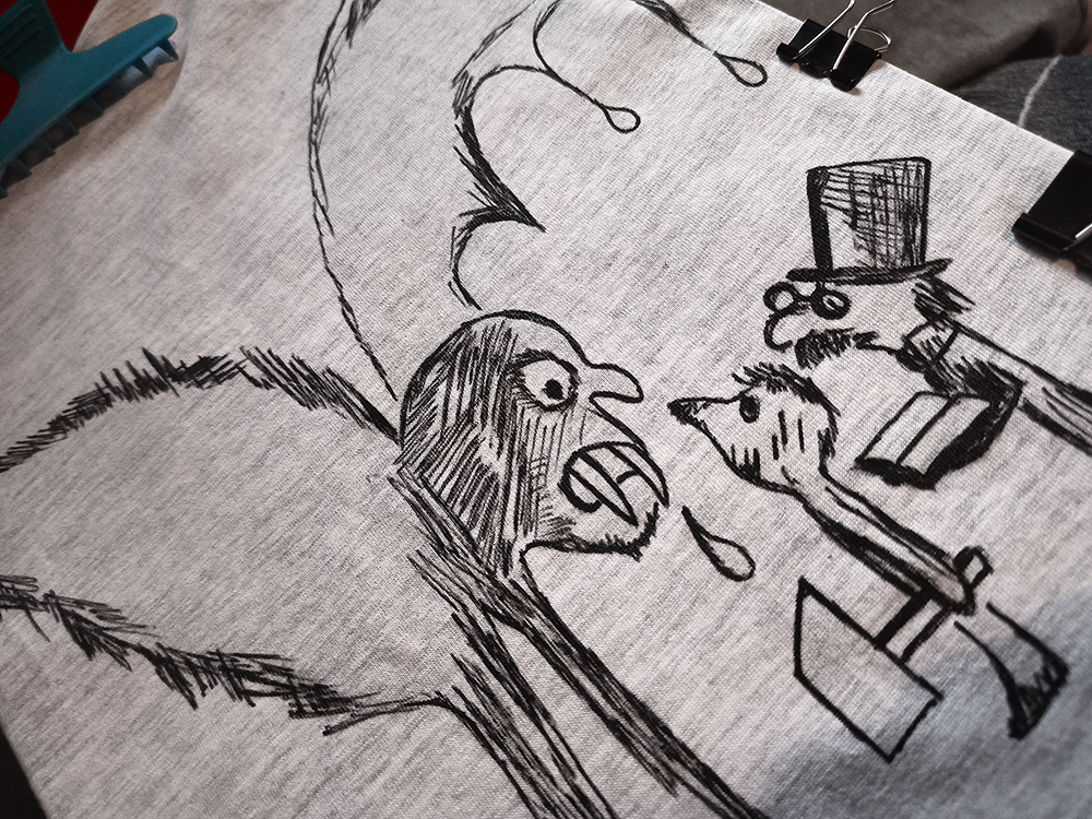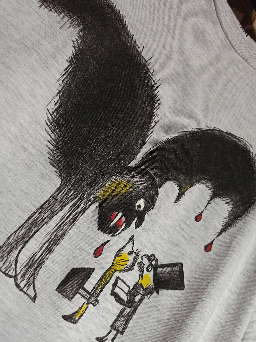 The drawing had to be heat-set with an iron, and of course in a future it's better to wash the t-shirt by hand.