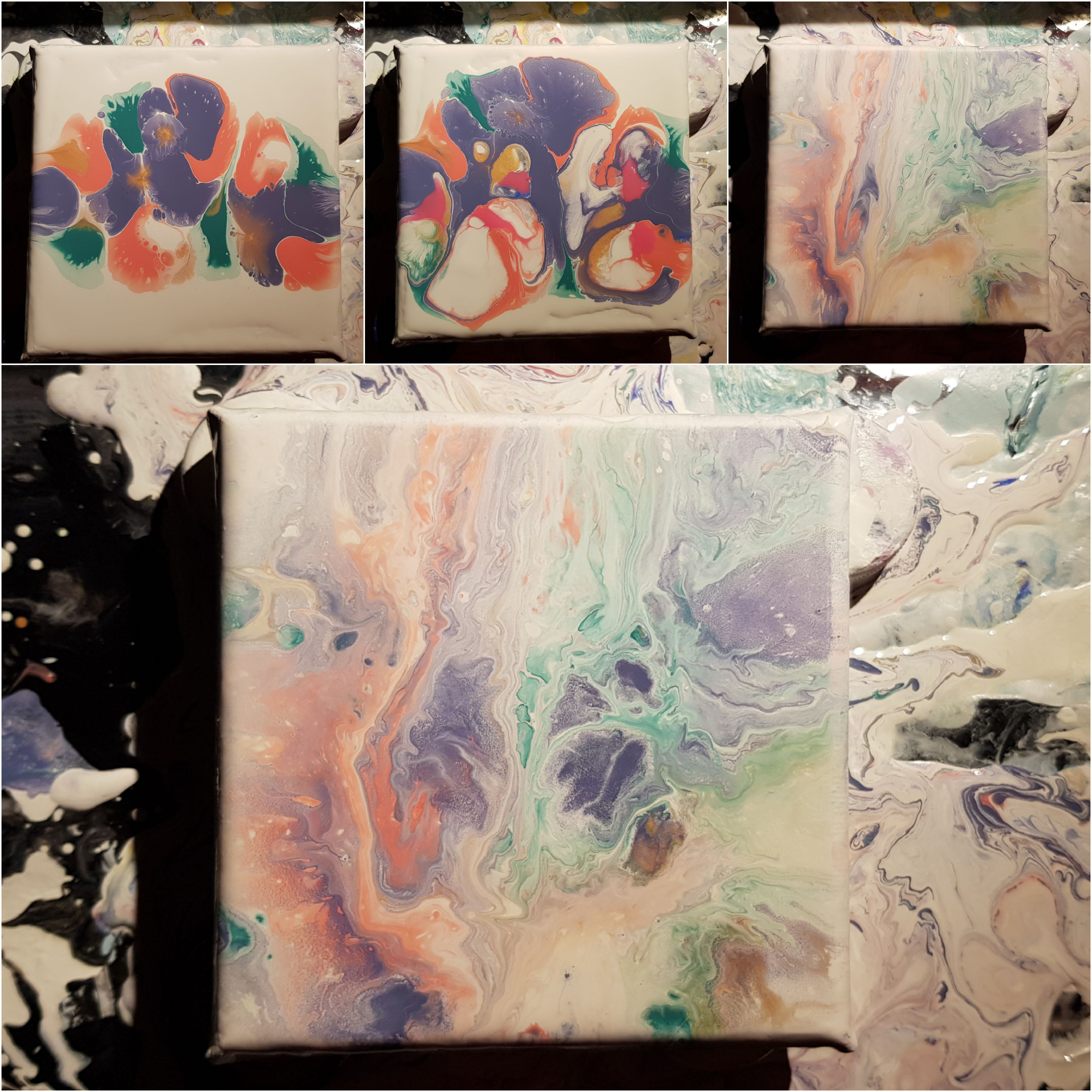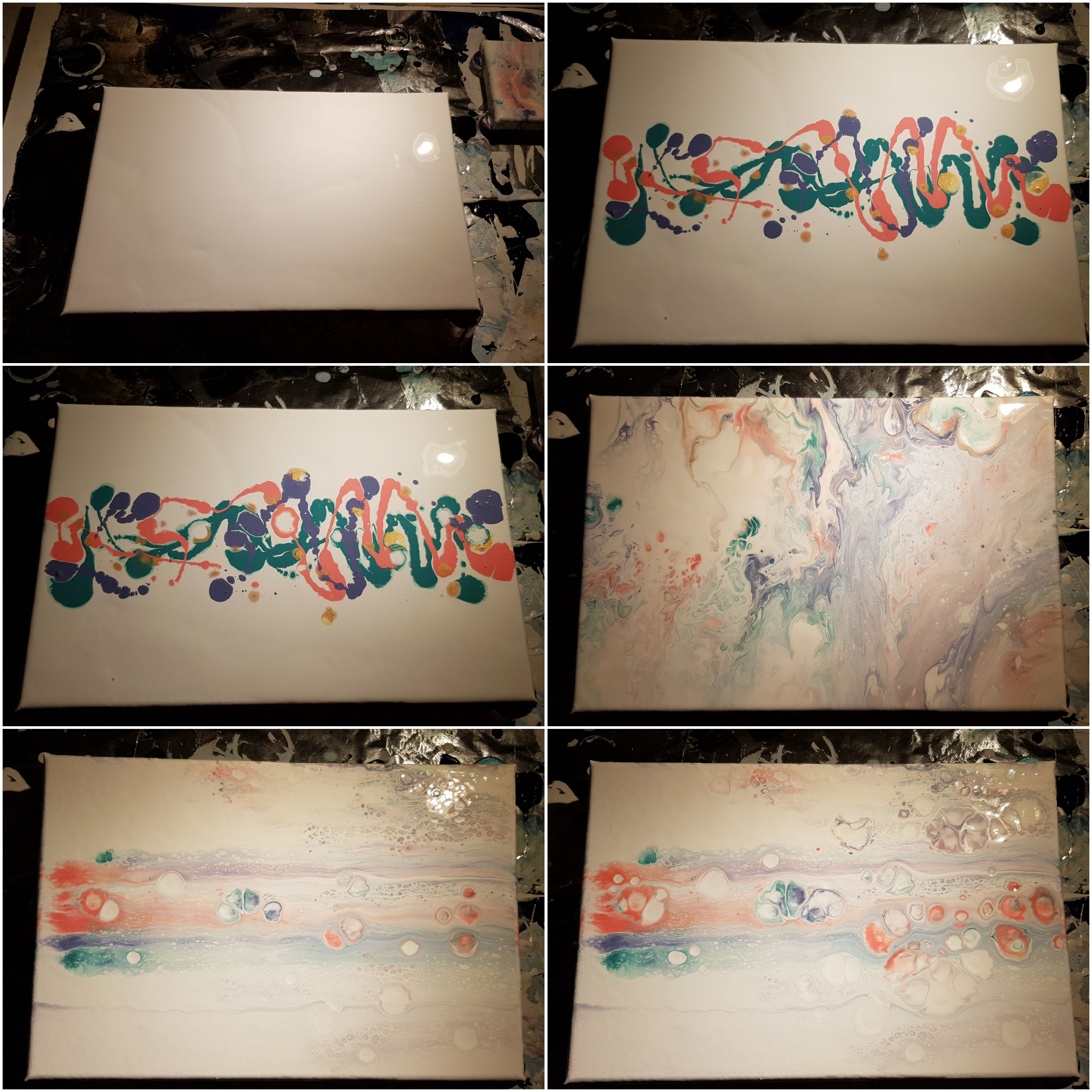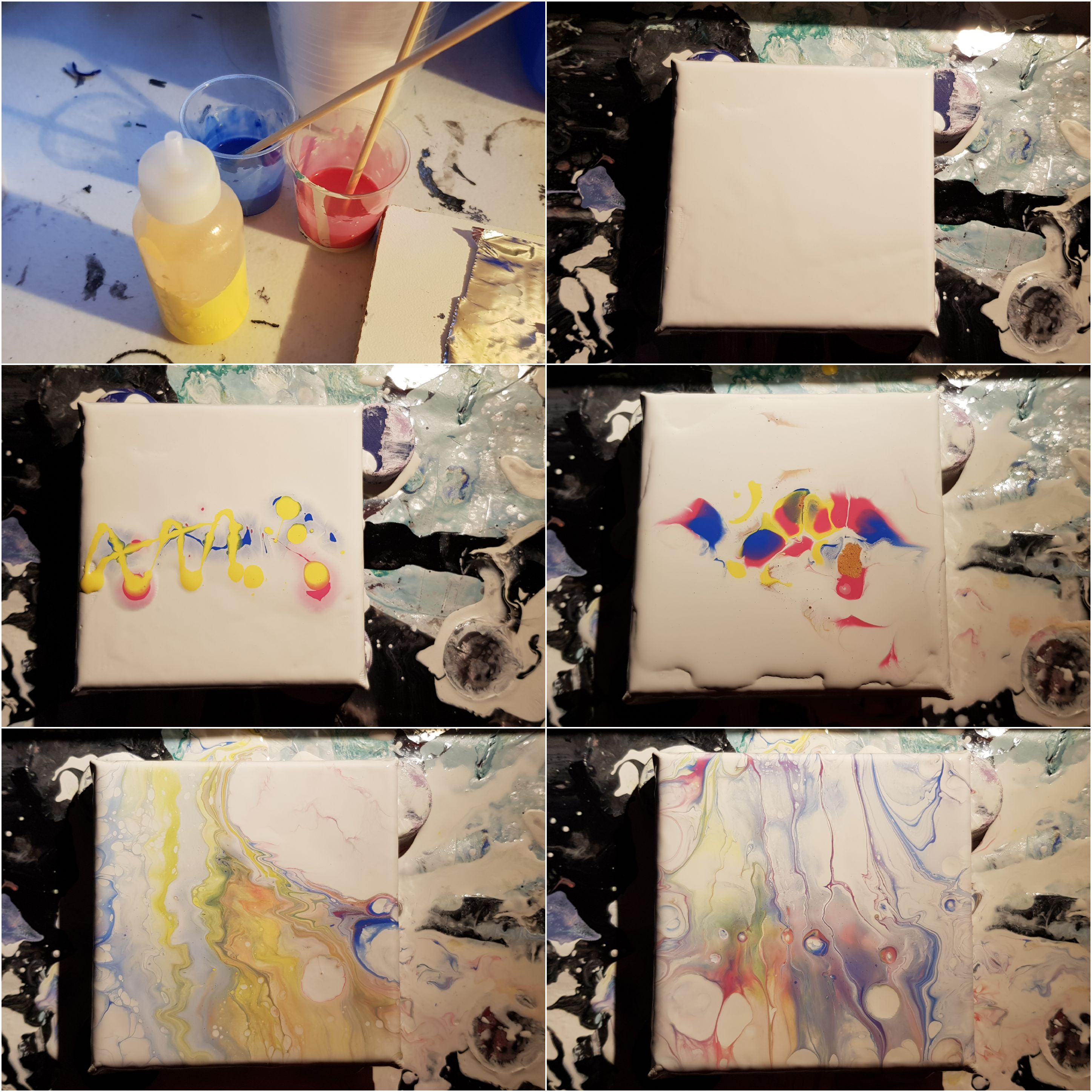 Figured start with a small canvas to test my primary colour pour using the swipe method. I imagined the red, blue and yellow swiping together to create colours.