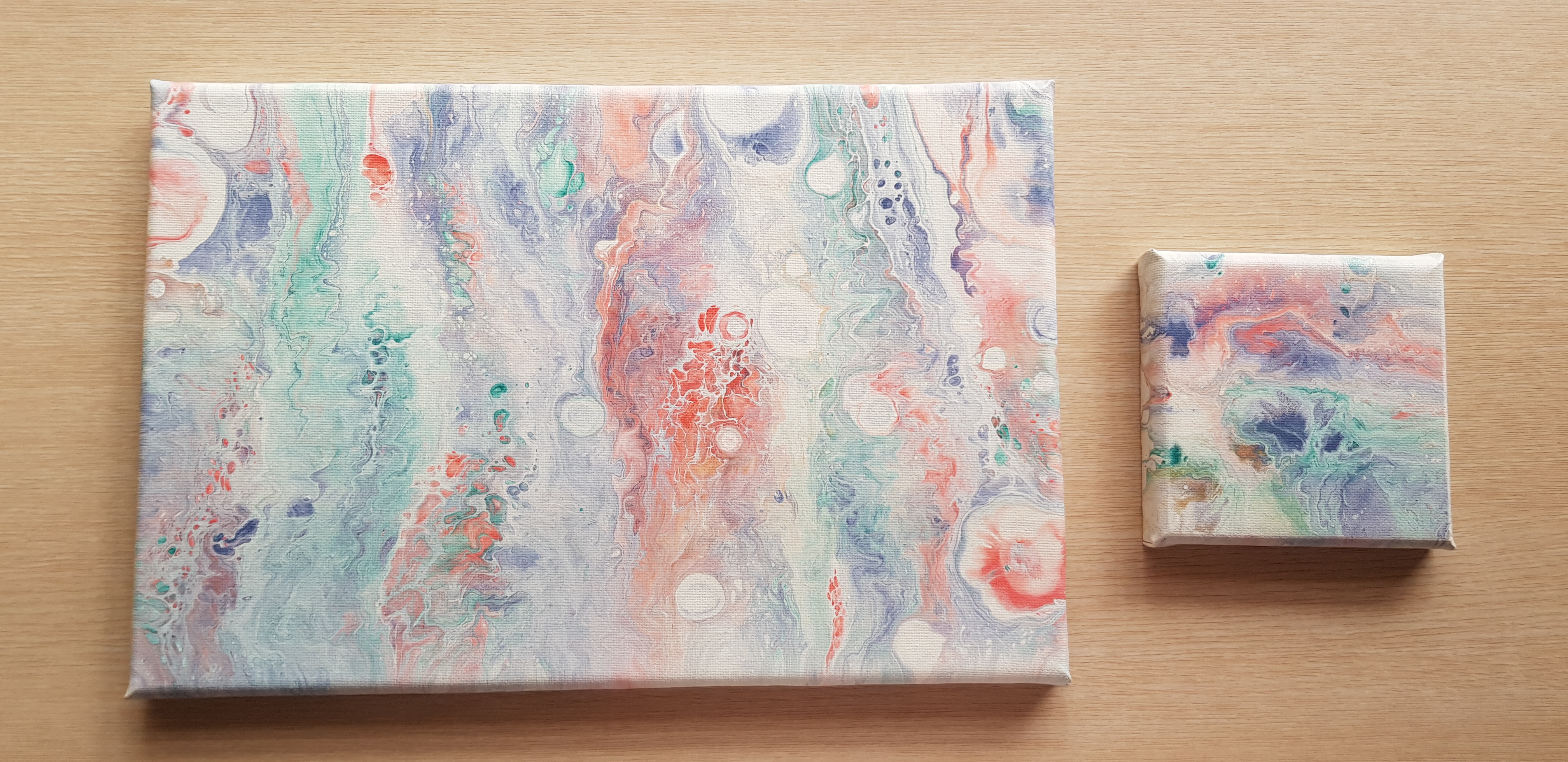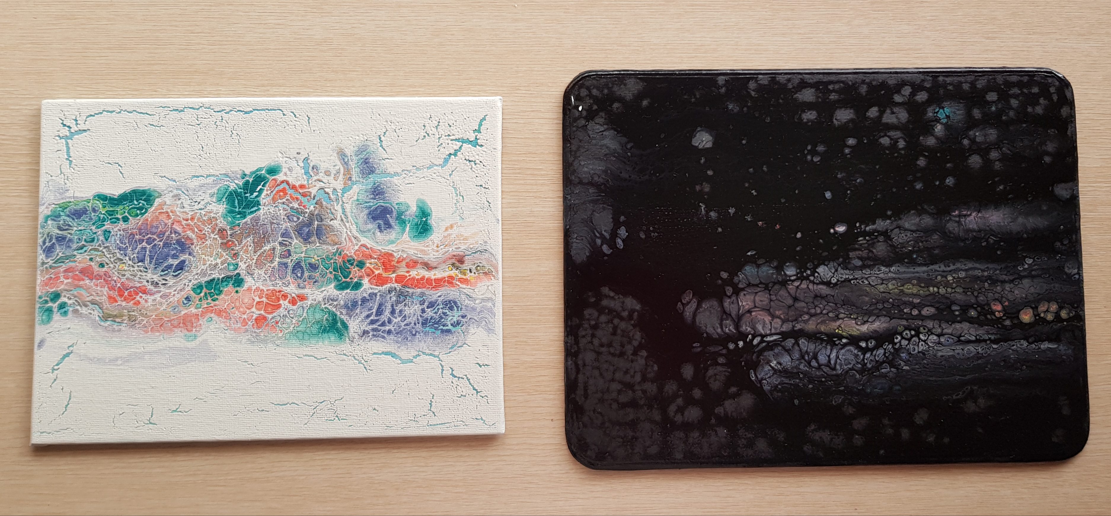 Both brand new canvases using the dutch pour method.