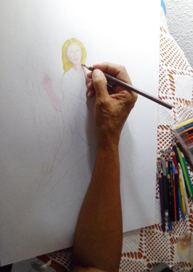 Arte empírico con lápices de colores: Arcángel de Luz Dorada