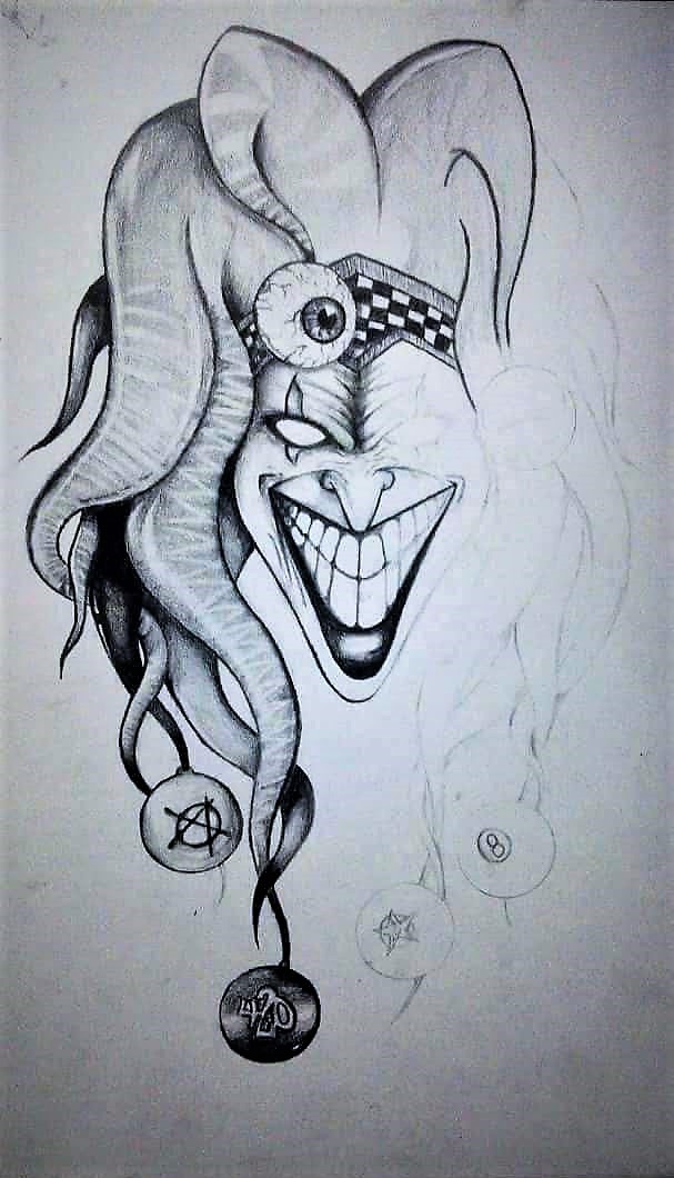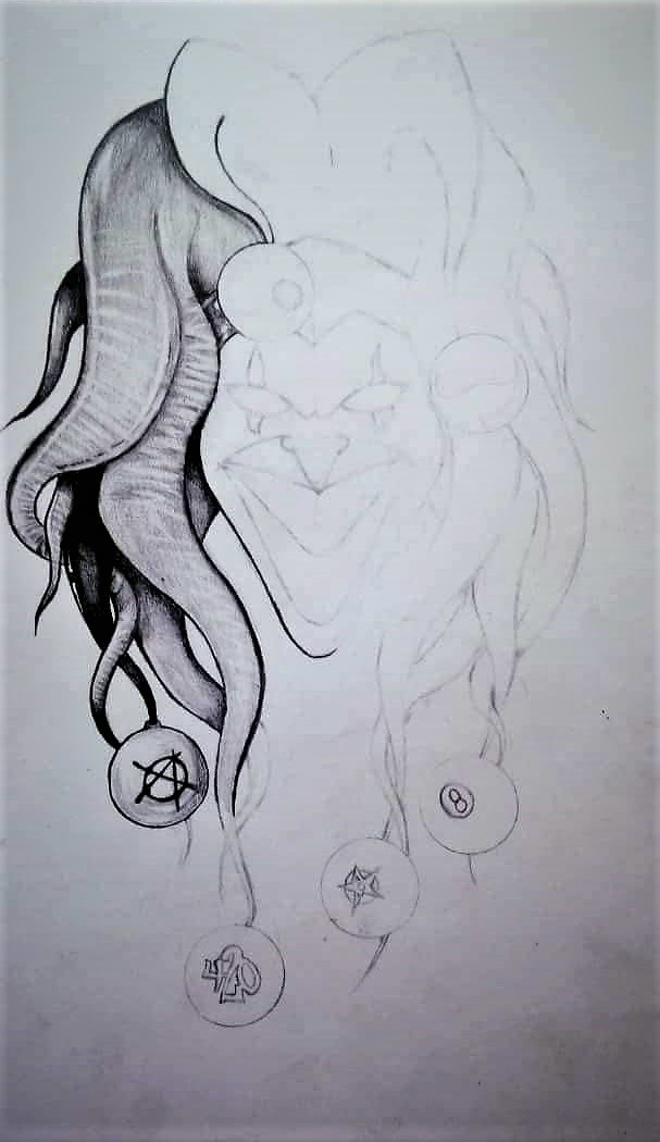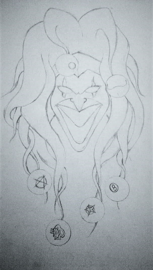 Sin duda el mejor diseño que encontré y los símbolos en las bolas de su sombrero tuvieron mucho que ver. Es el segundo dibujo que dedico a el Joker; pero el tercero que hago en el que él aparece. Aquí les dejo los enlaces a mis dibujos anteriores donde él está presente (1, 2). Espero os haya gustado el dibujo y puedan apoyarme con un comentario, sugerencia, resteem o su precioso voto, me ayudaría muchísimo.