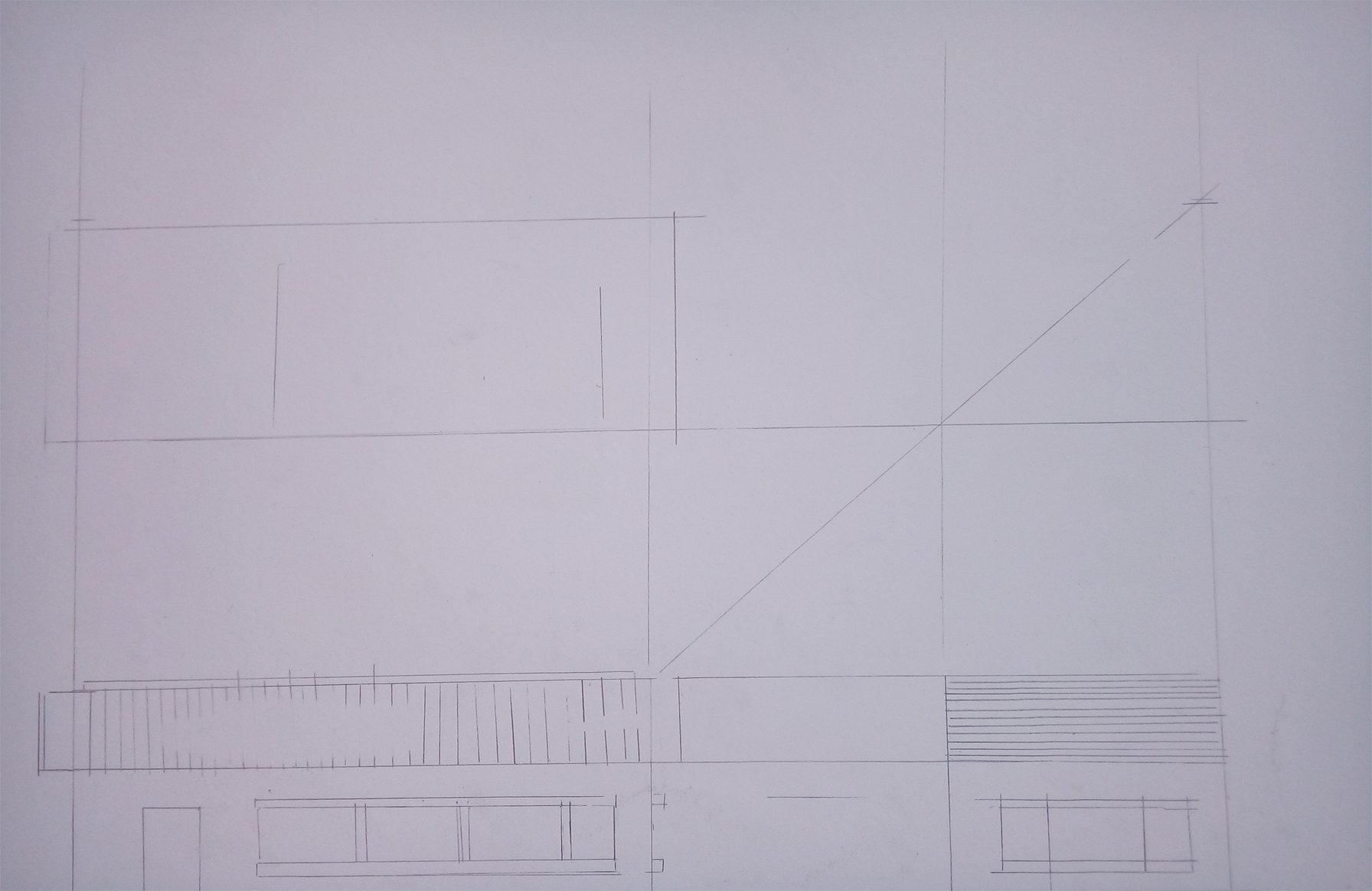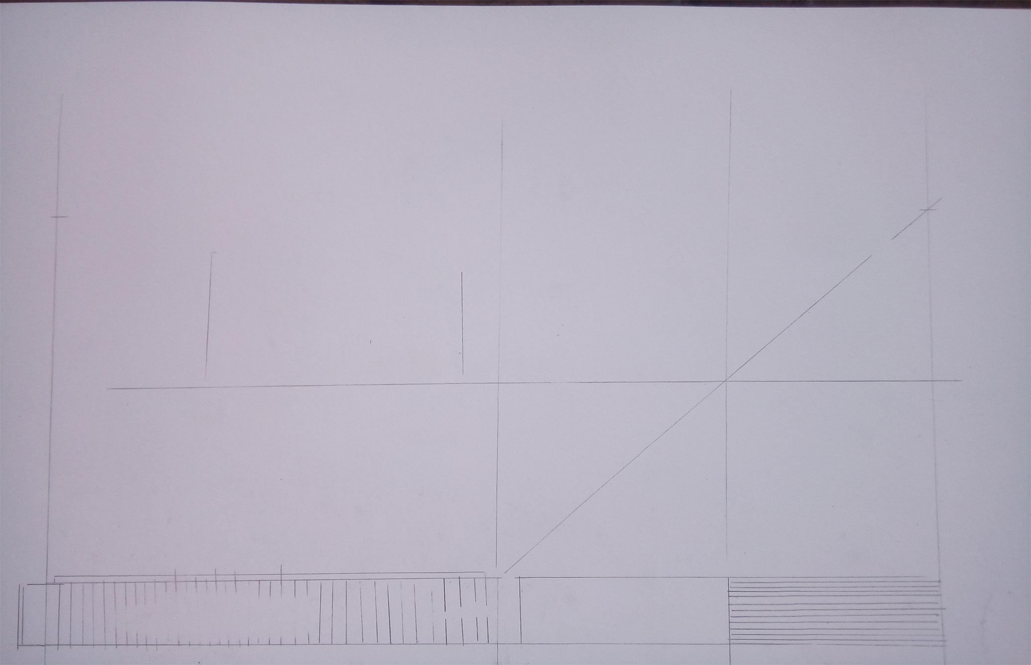 First I took a ruler(a t-square with a square table and a 45 degree triangle would be really hepful)