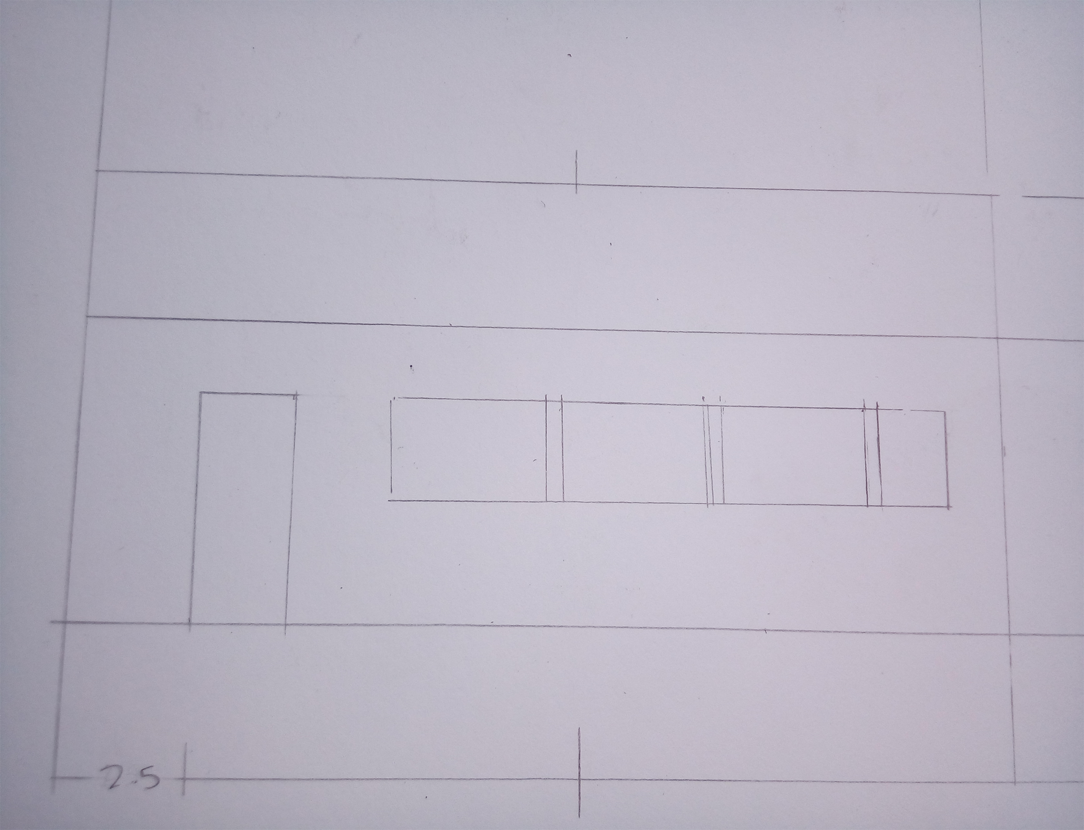 I then measured 2.5 from one of the sides of the rectangle. This part will be the door.