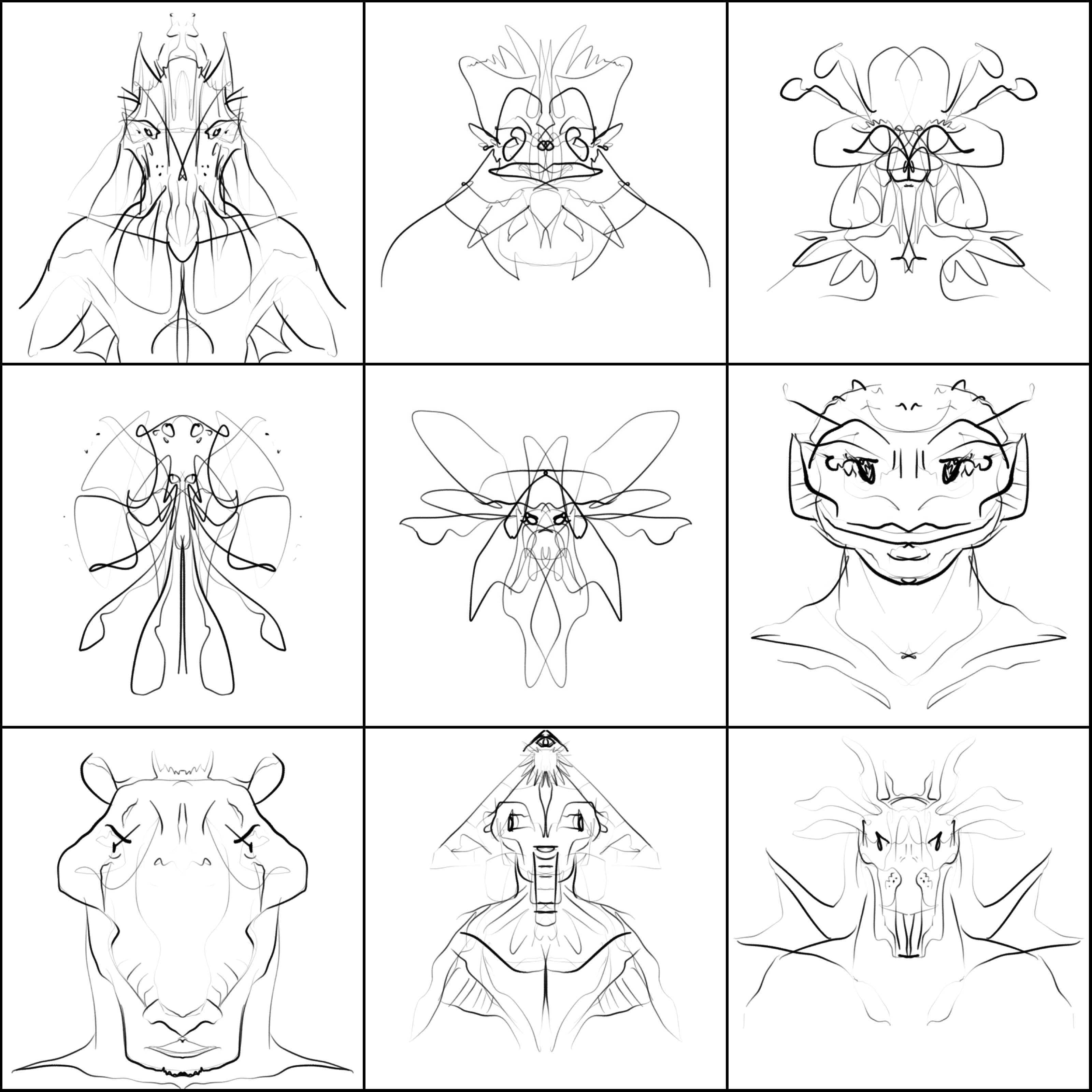 Open your symmetry Guide in half and start doodling. Don’t think about every stroke you made just make some random lines and you will find very fast patterns that remind faces or whole Creatures.
